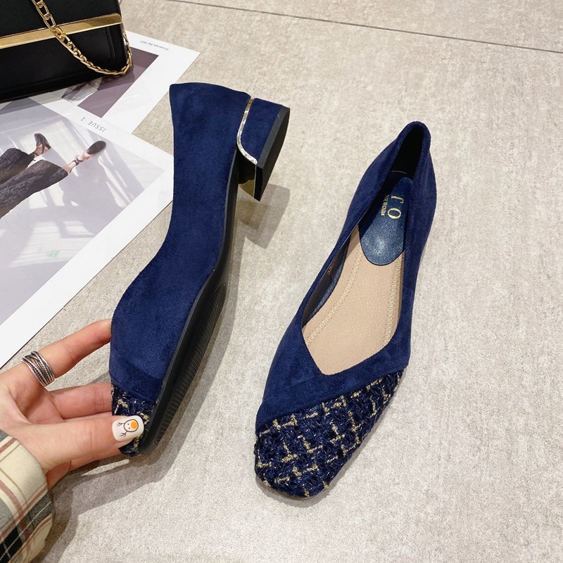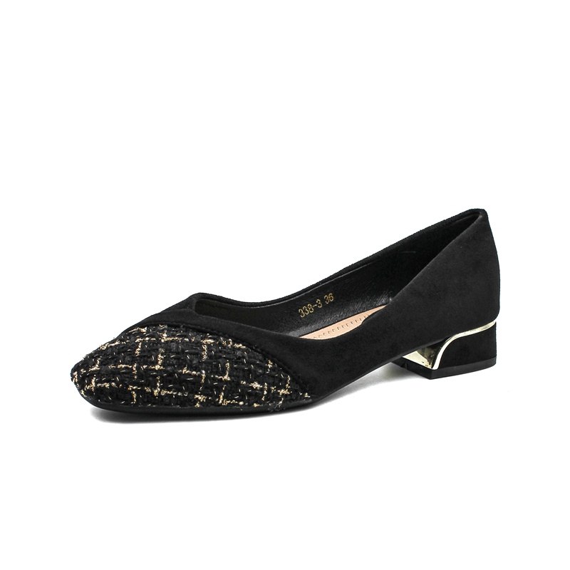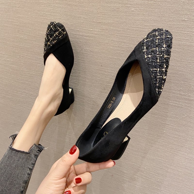 粗跟女鞋工作鞋小香风拼接