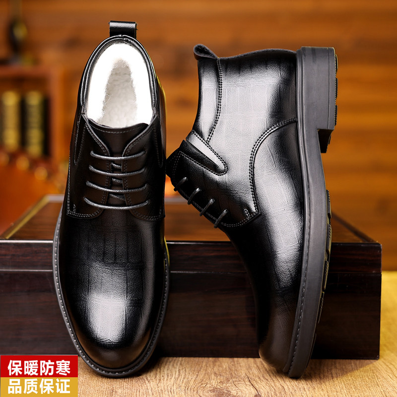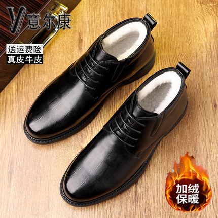 意尔康男鞋冬季加绒加厚羊毛保暖棉鞋商务正装高帮皮鞋防滑通勤鞋