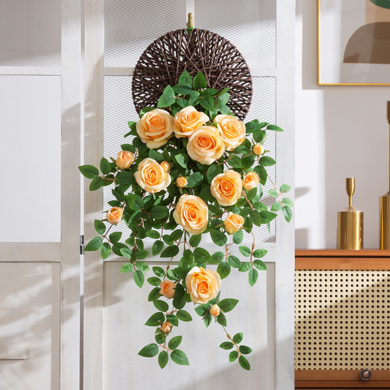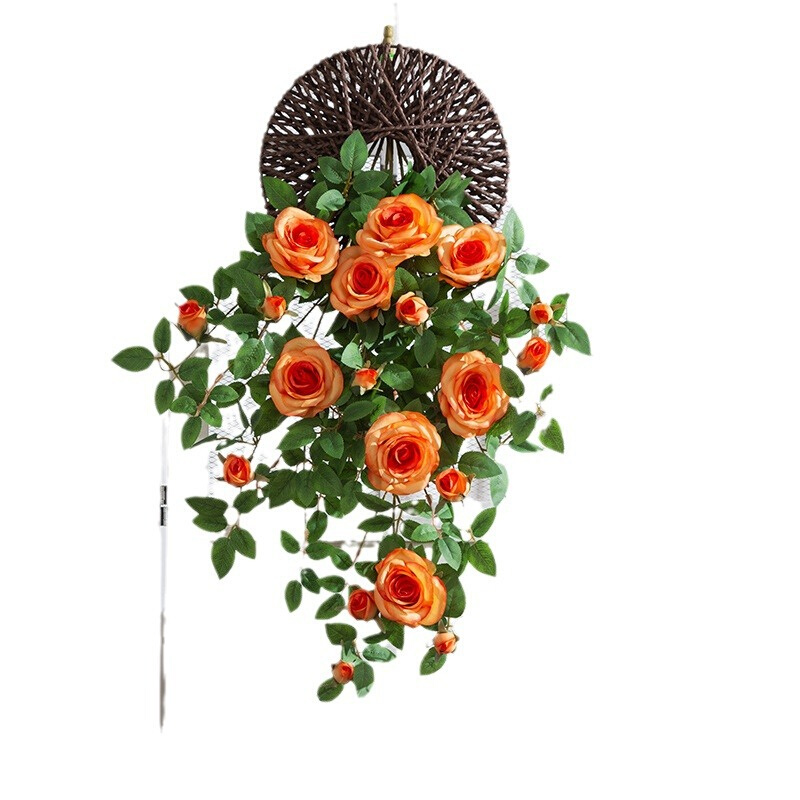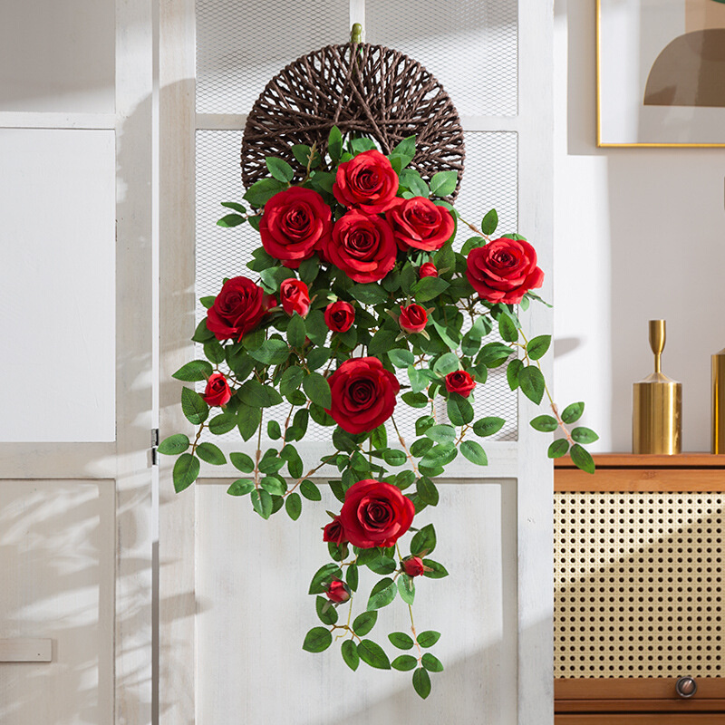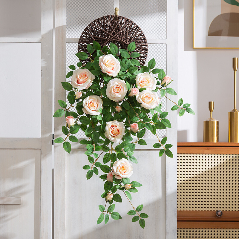仿真花壁挂墙壁装饰花挂花吊花假花藤条高档仿生玫瑰花藤墙面遮挡
