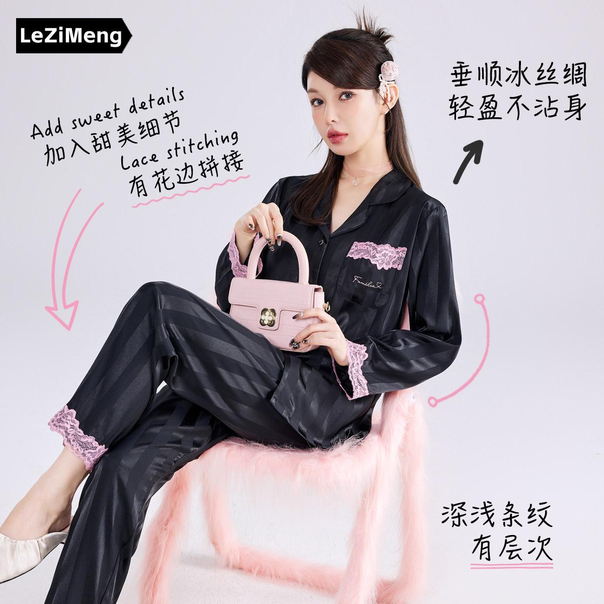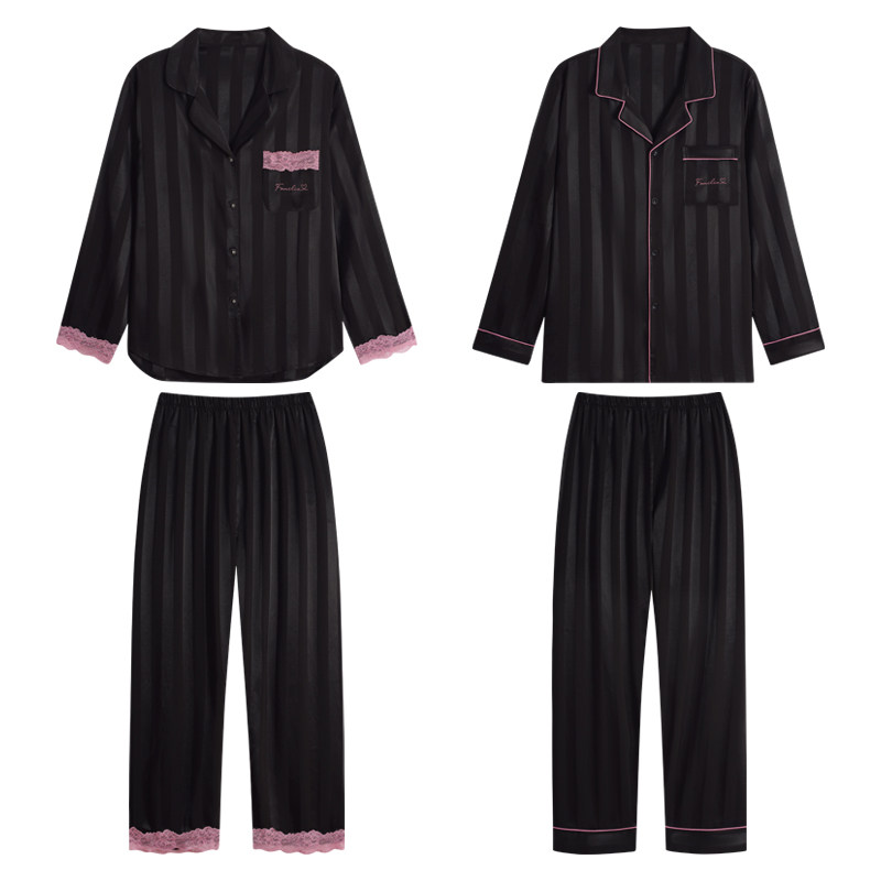 礼盒装情侣睡衣冰丝长袖女春秋黑色高级感男士夏季轻奢家居服套装