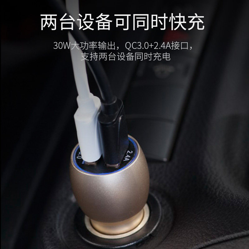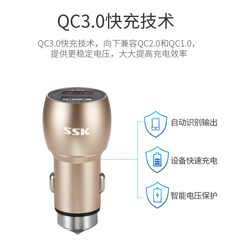 SSK飚王 车载充电器手机车充双口一拖二USB快充汽车多功能点烟器