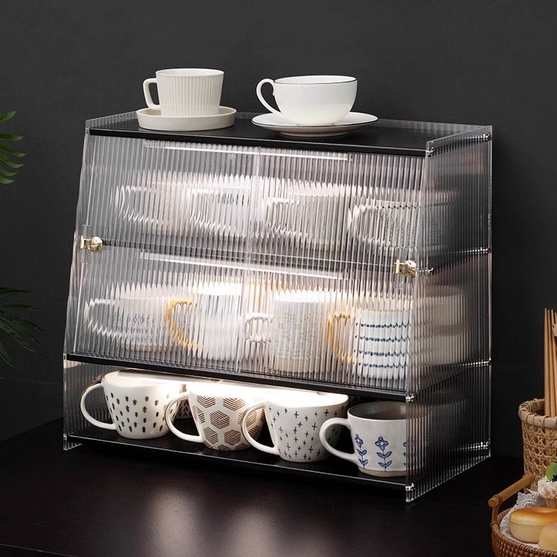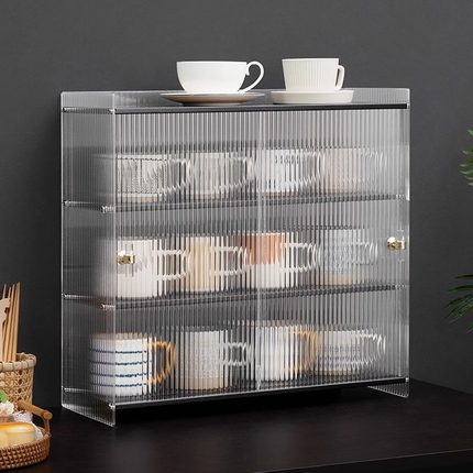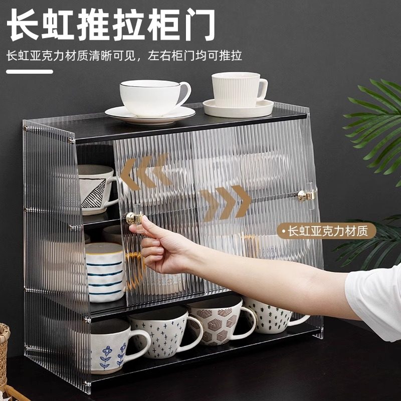 收纳柜子置物柜家用防尘杯架子零食长虹玻璃桌面抽屉式多层整理架