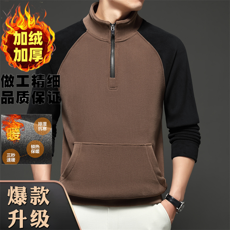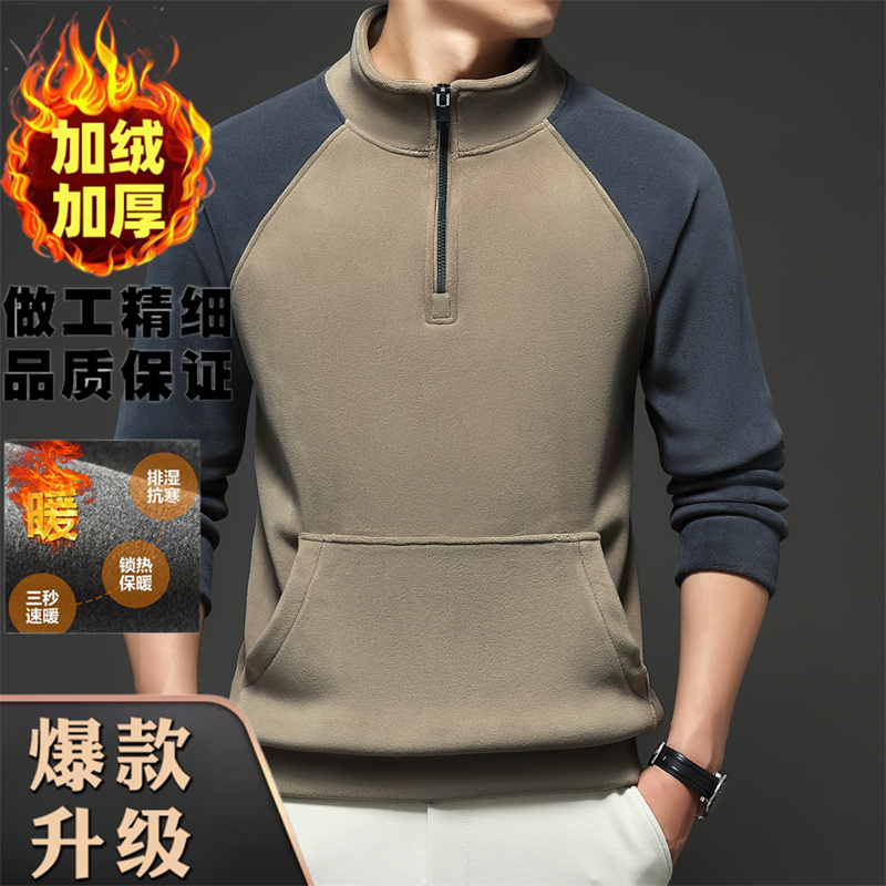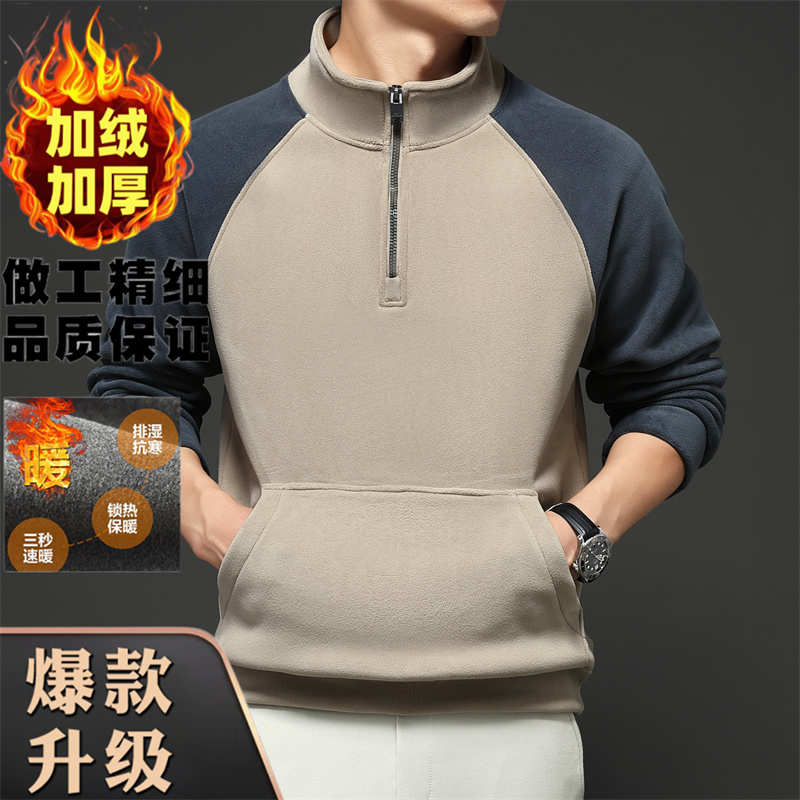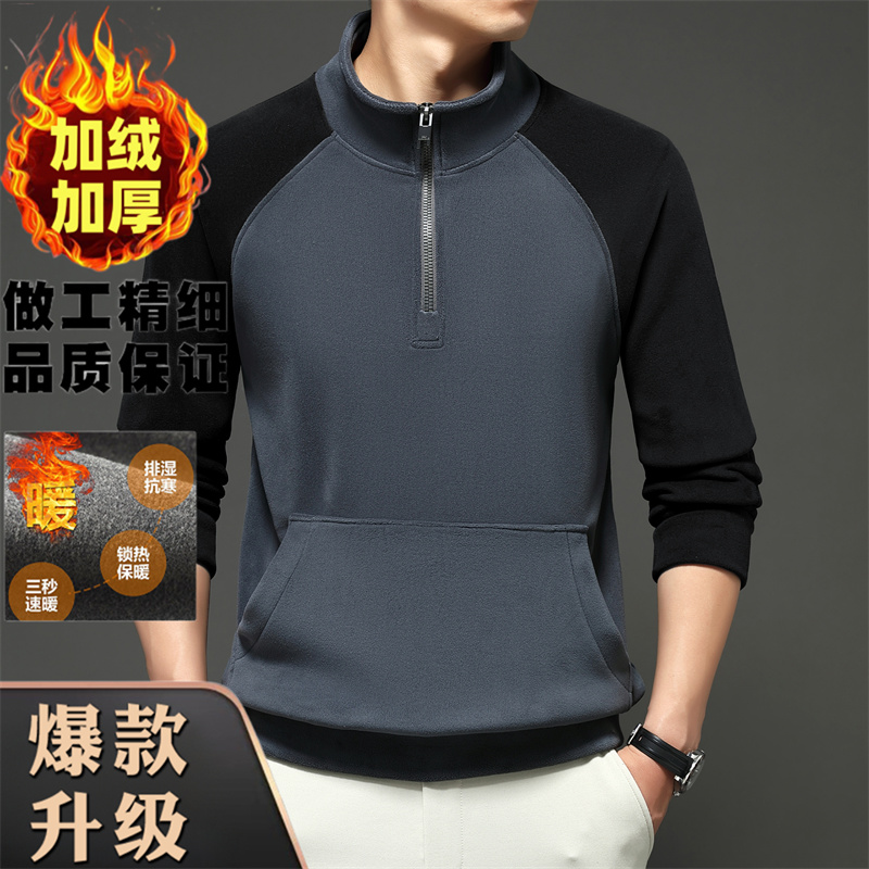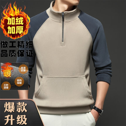 双面澳粒绒立领卫衣男士冬季插肩袖拼色加绒加厚休闲运动打底衫男