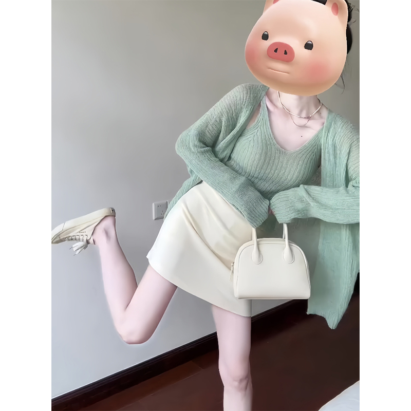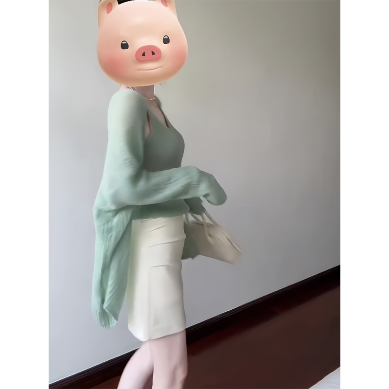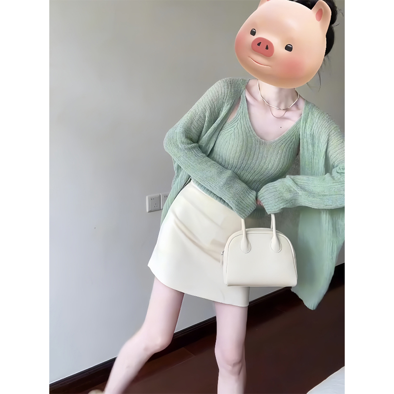 温柔风洋气气质松弛感长袖防晒针织开衫内搭吊带背心两件套上衣女