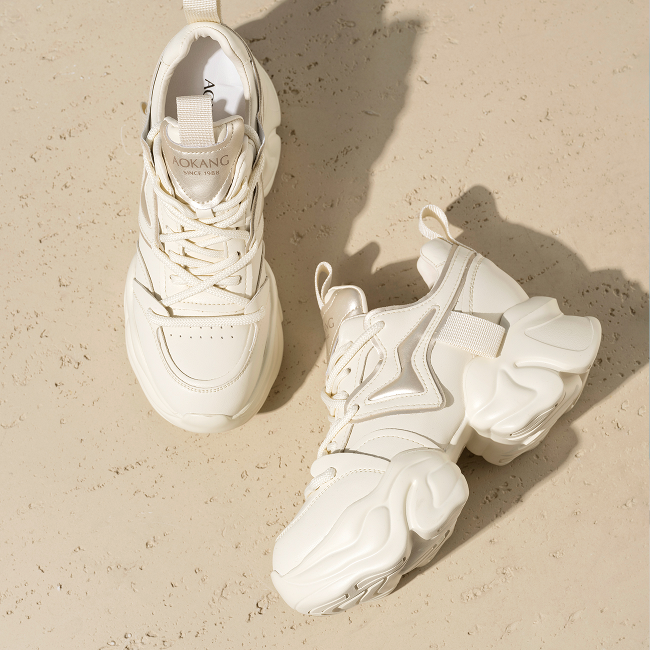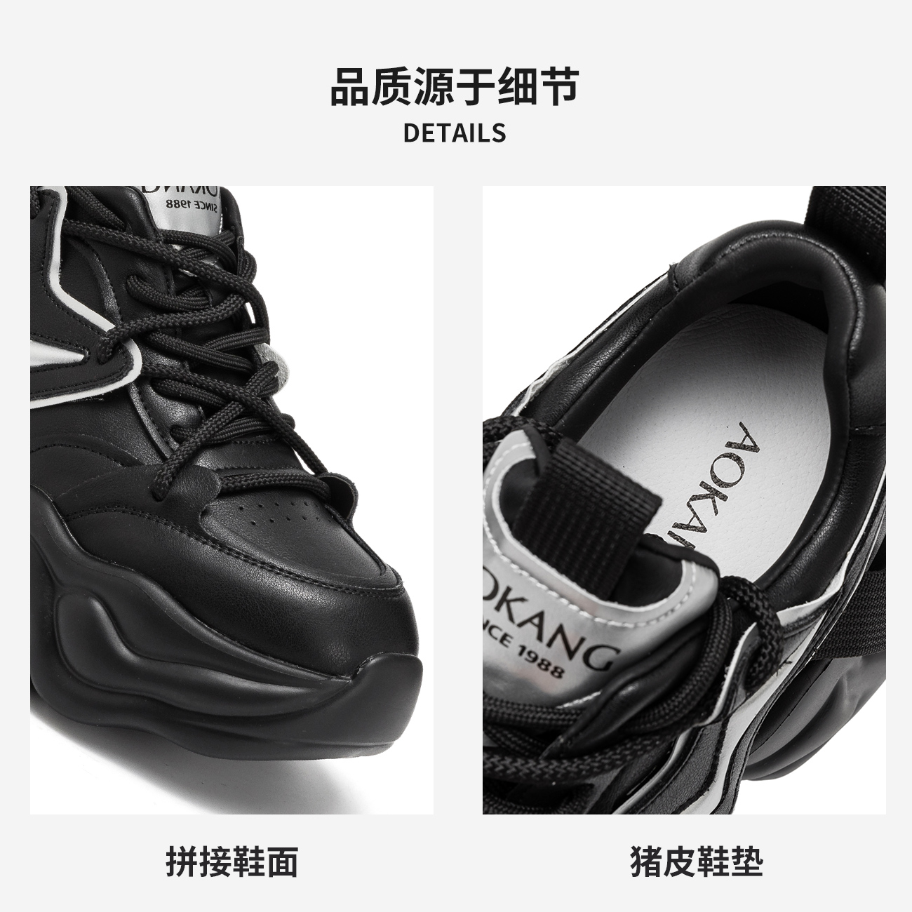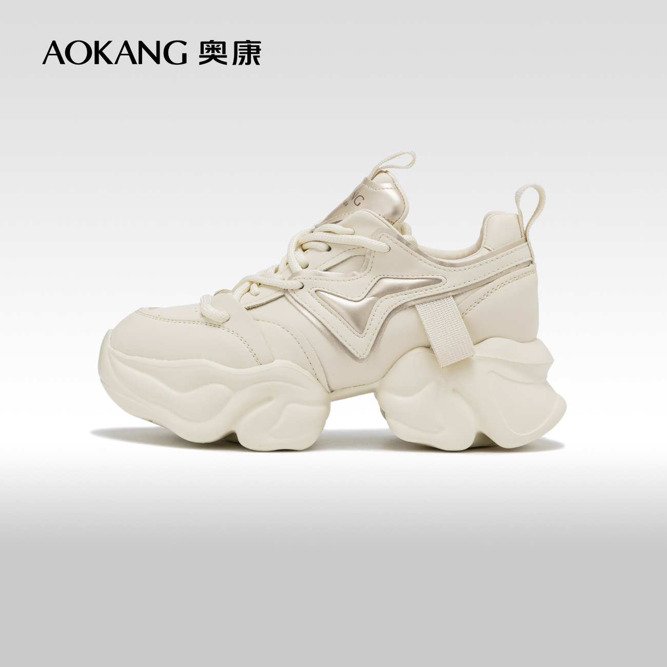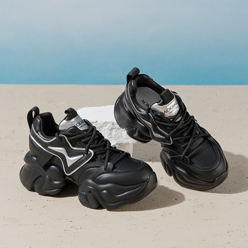 奥康女鞋春秋季新款增高厚底老爹鞋时尚系带运动休闲鞋小白鞋