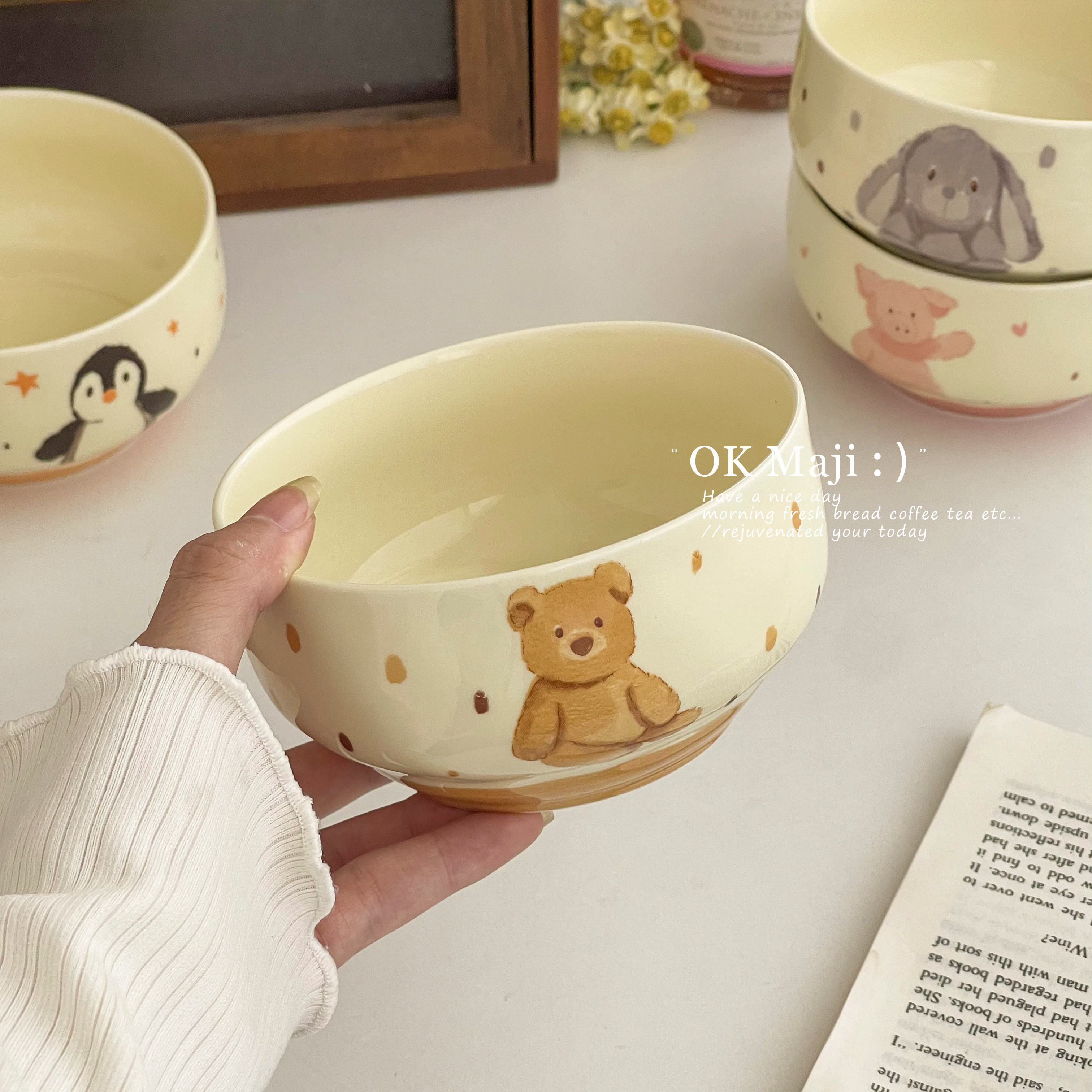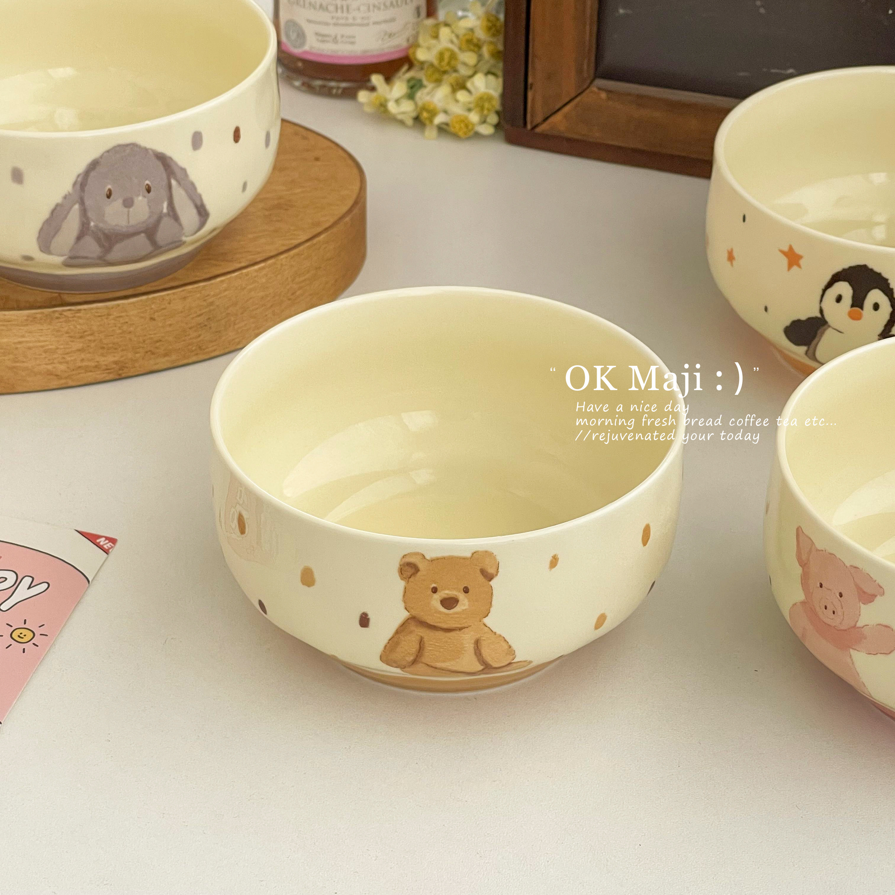 卡通陶瓷饭碗家用2026新款高颜值漂亮酸奶碗带勺女士个人专用碗具