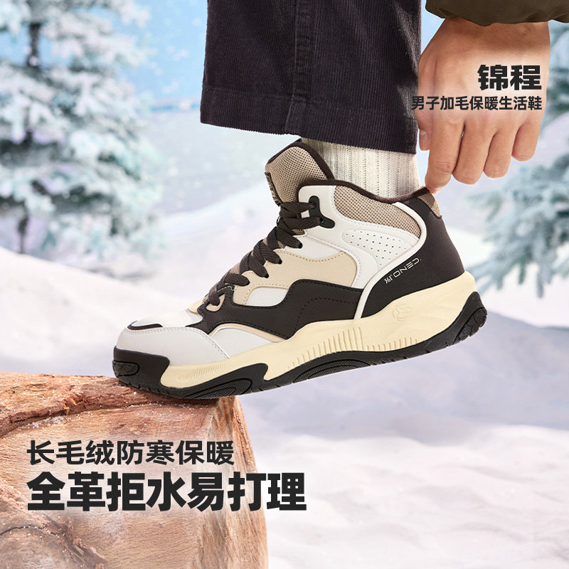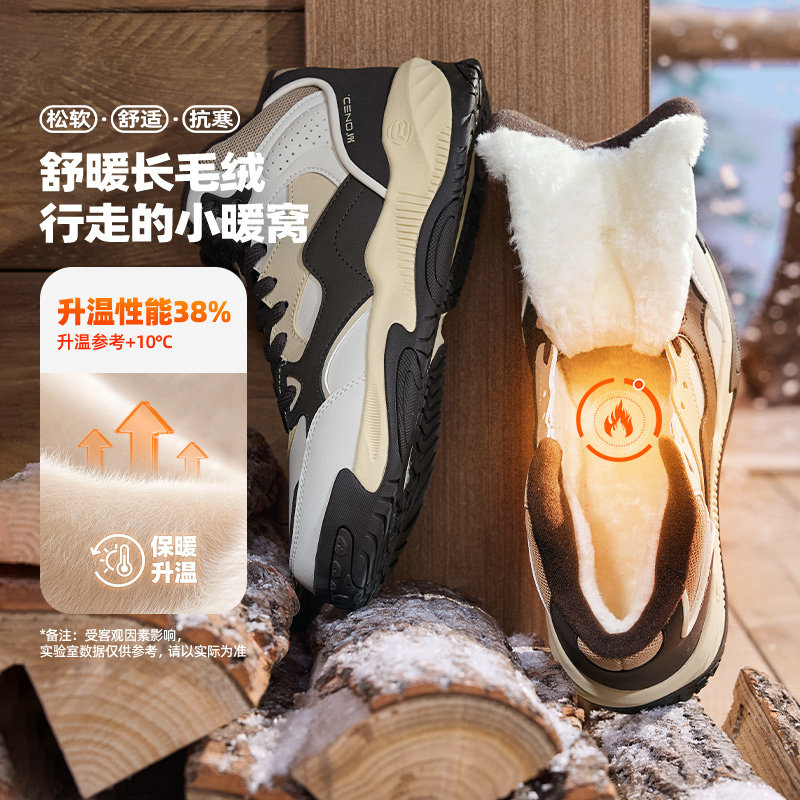 361加绒鞋男高帮板鞋2025冬季新款休闲运动鞋男款加毛保暖大棉鞋