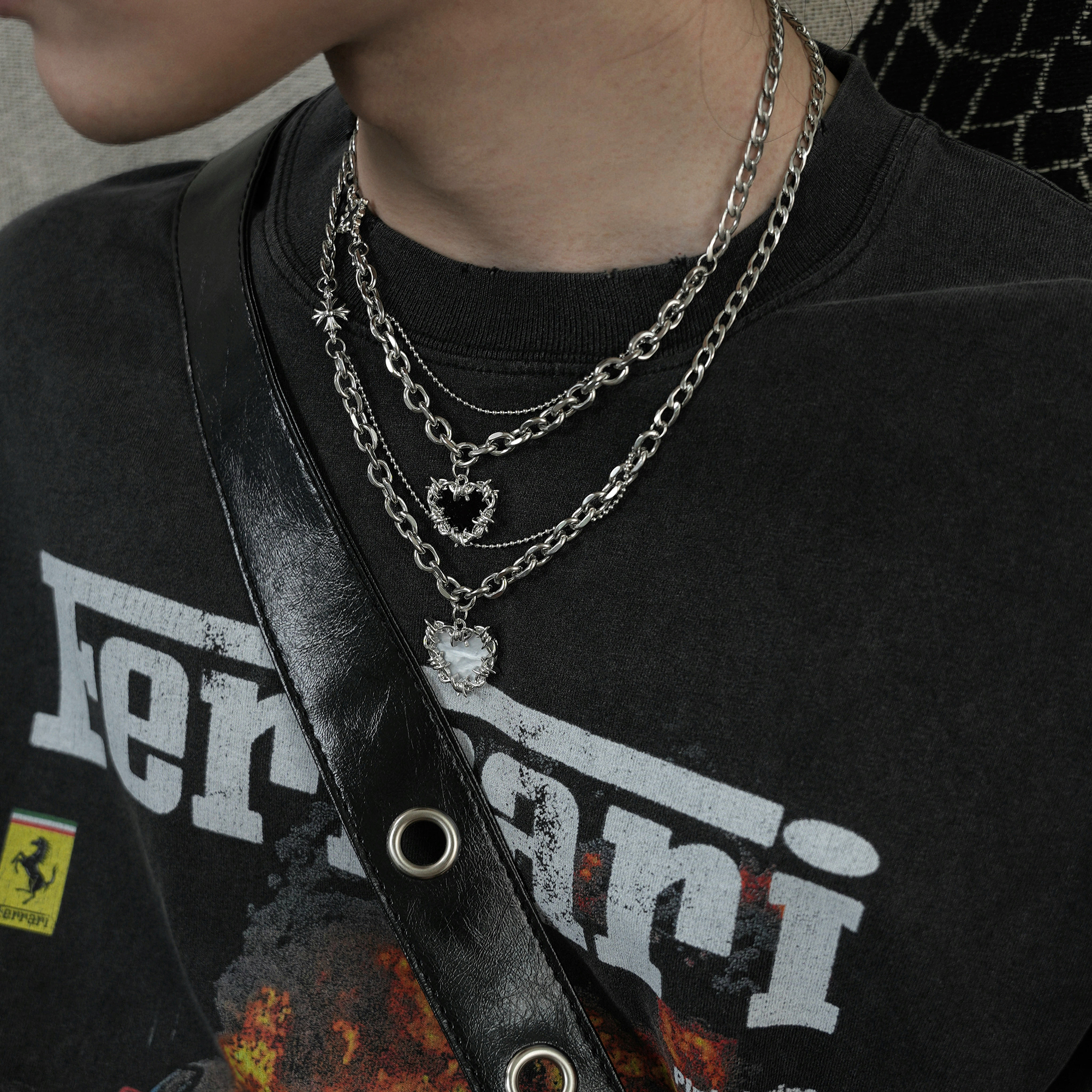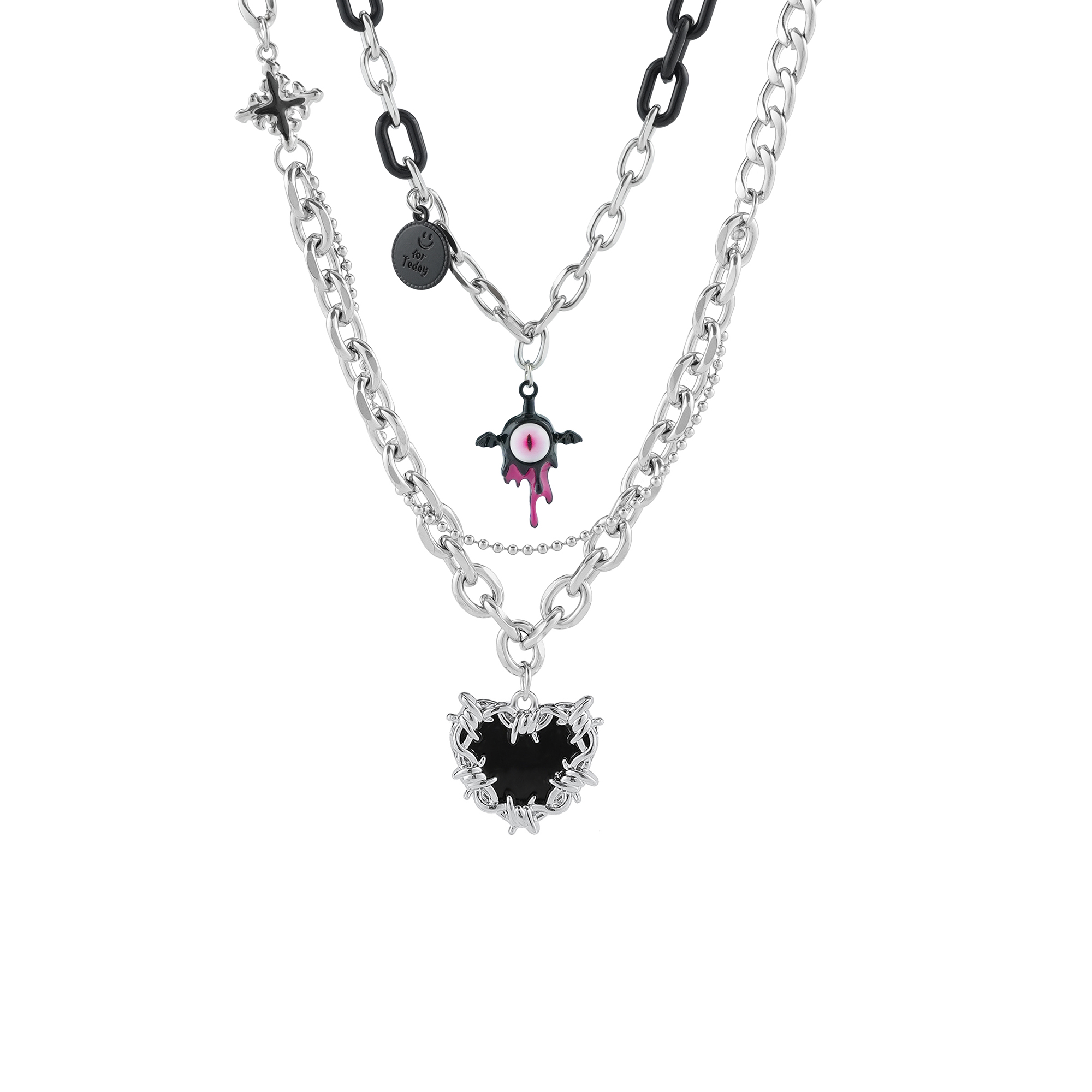 SAZ小恶魔荆棘爱心Y2K拼接项链男女甜酷暗黑潮流颈链配饰情侣项链