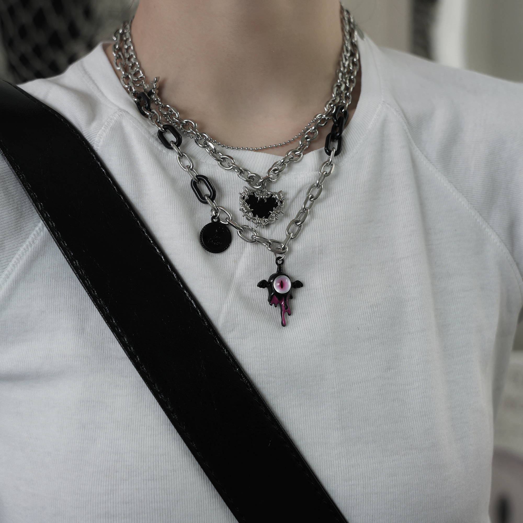 小恶魔荆棘爱心Y2K暗黑个性项链