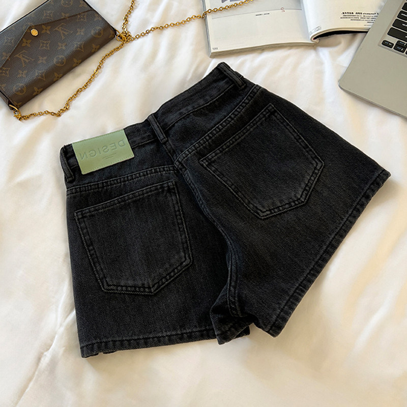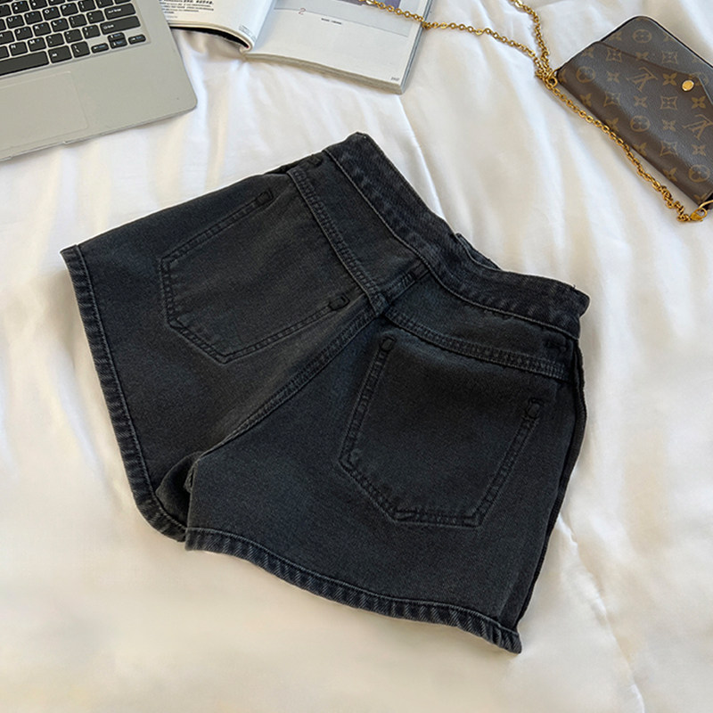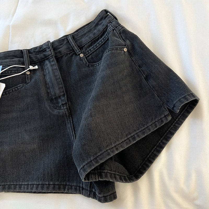 2025新款夏装女童洋气黑灰色开叉高腰A字牛仔短裤中大童显瘦热裤