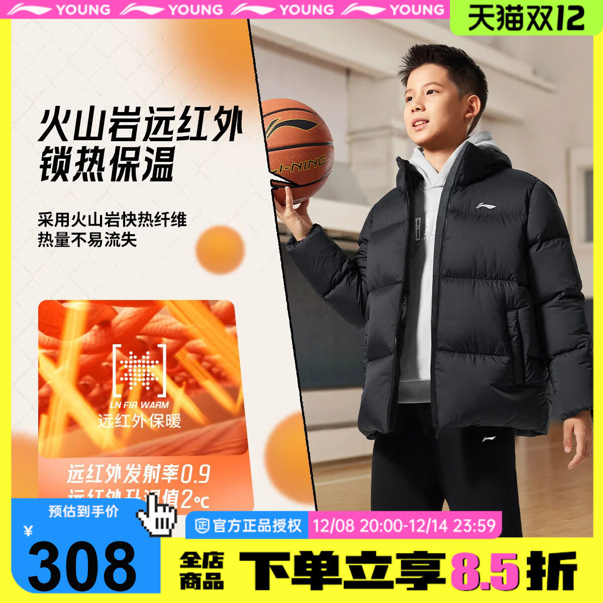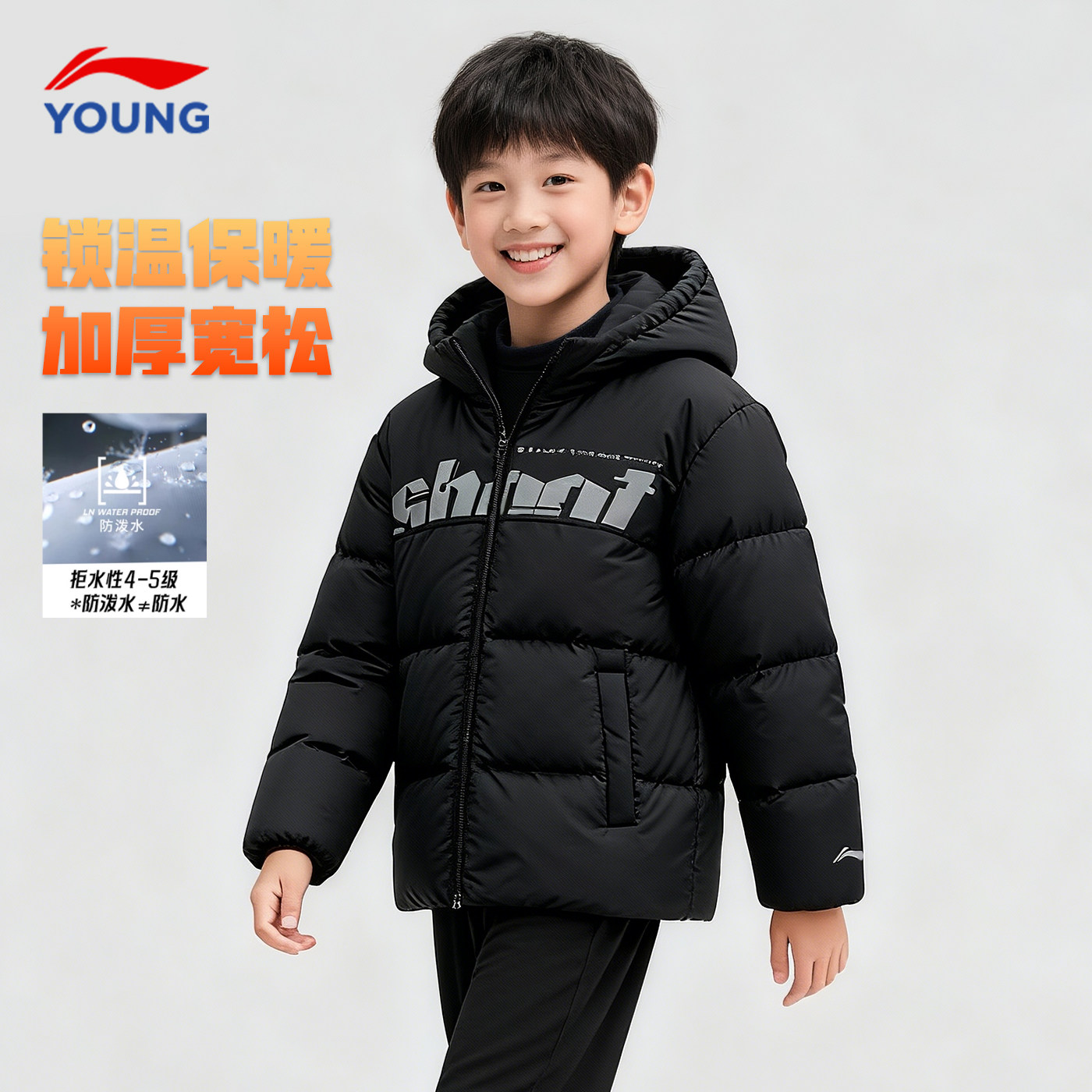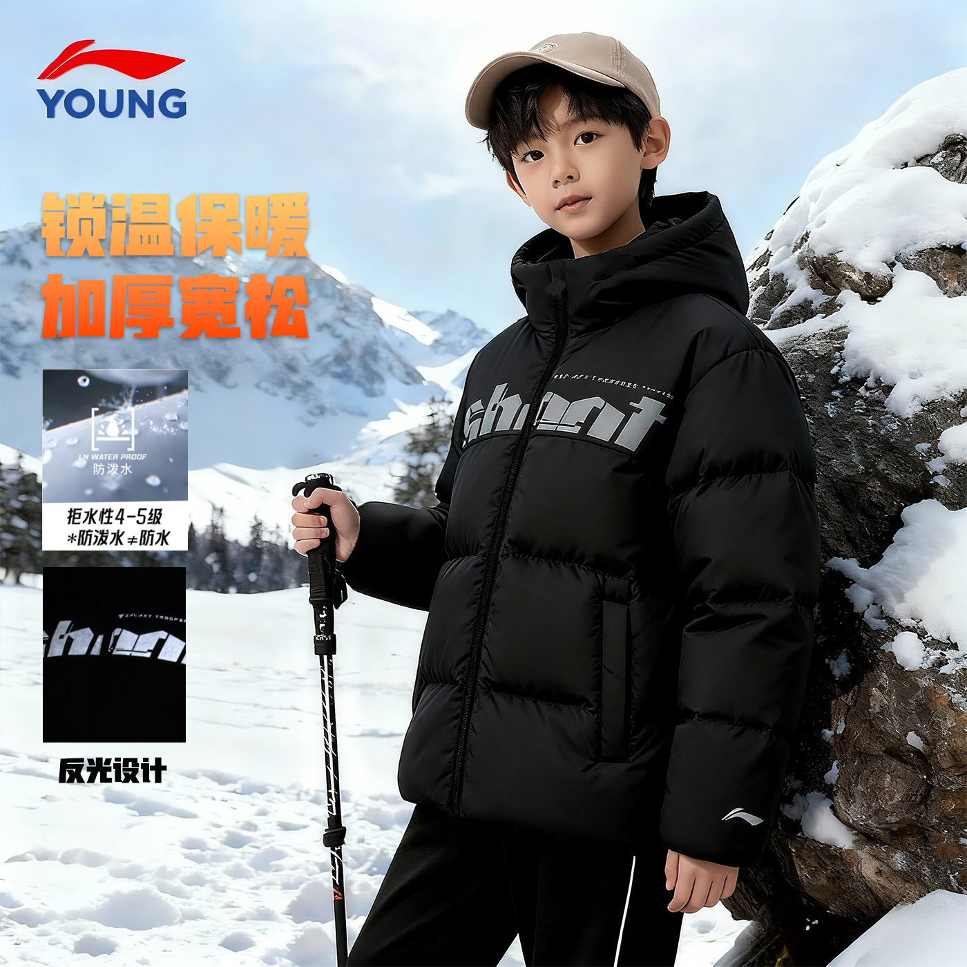 李宁儿童羽绒服男童2025秋冬新款男女大童防泼水加厚保暖冬装外套