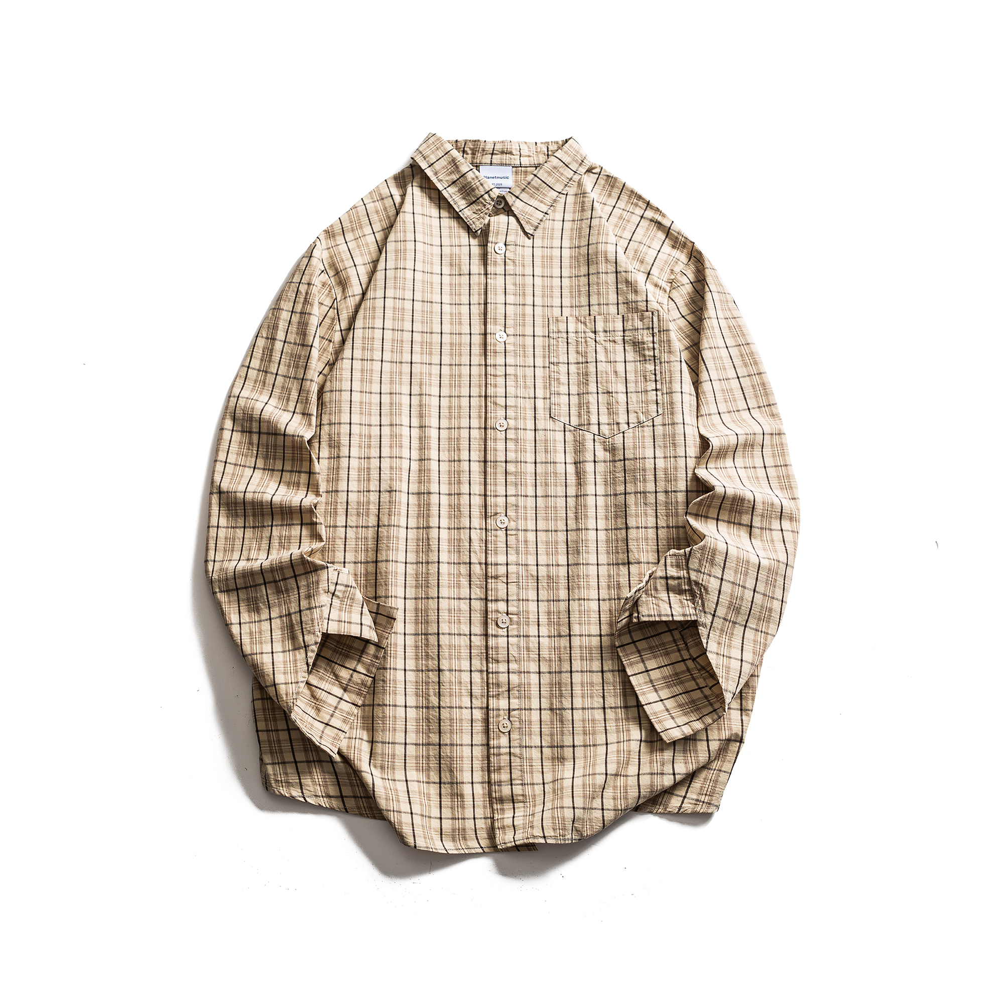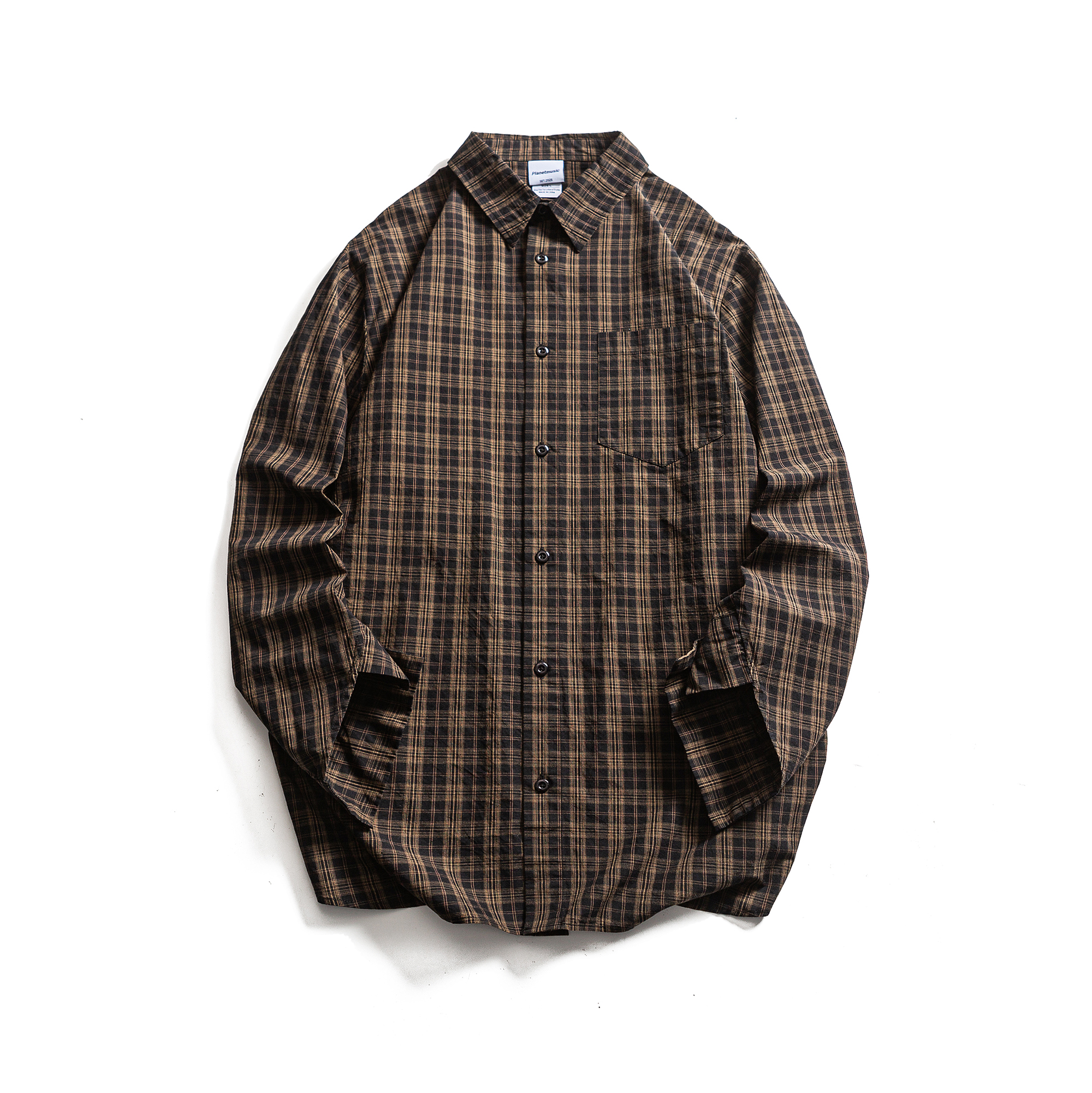 日系复古格子衬衫男女同款潮牌慵懒风长袖衬衫宽松休闲百搭潮外套