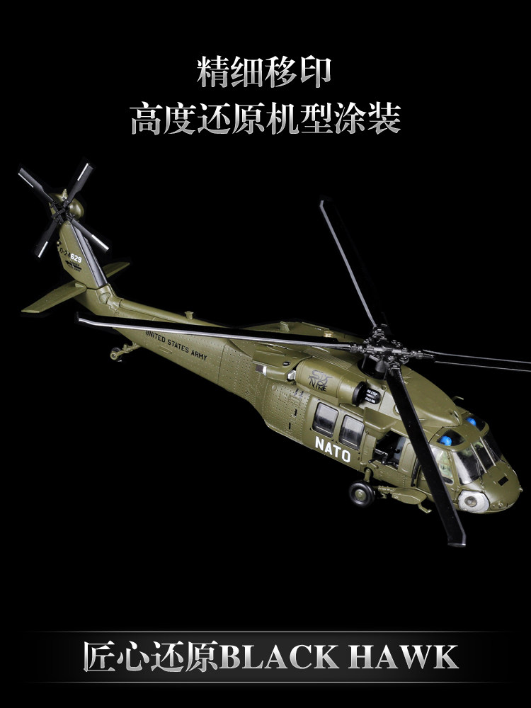 1:72UH60通用直升机模型合金飞机摆件仿真美军黑鹰坠落纪念品航模