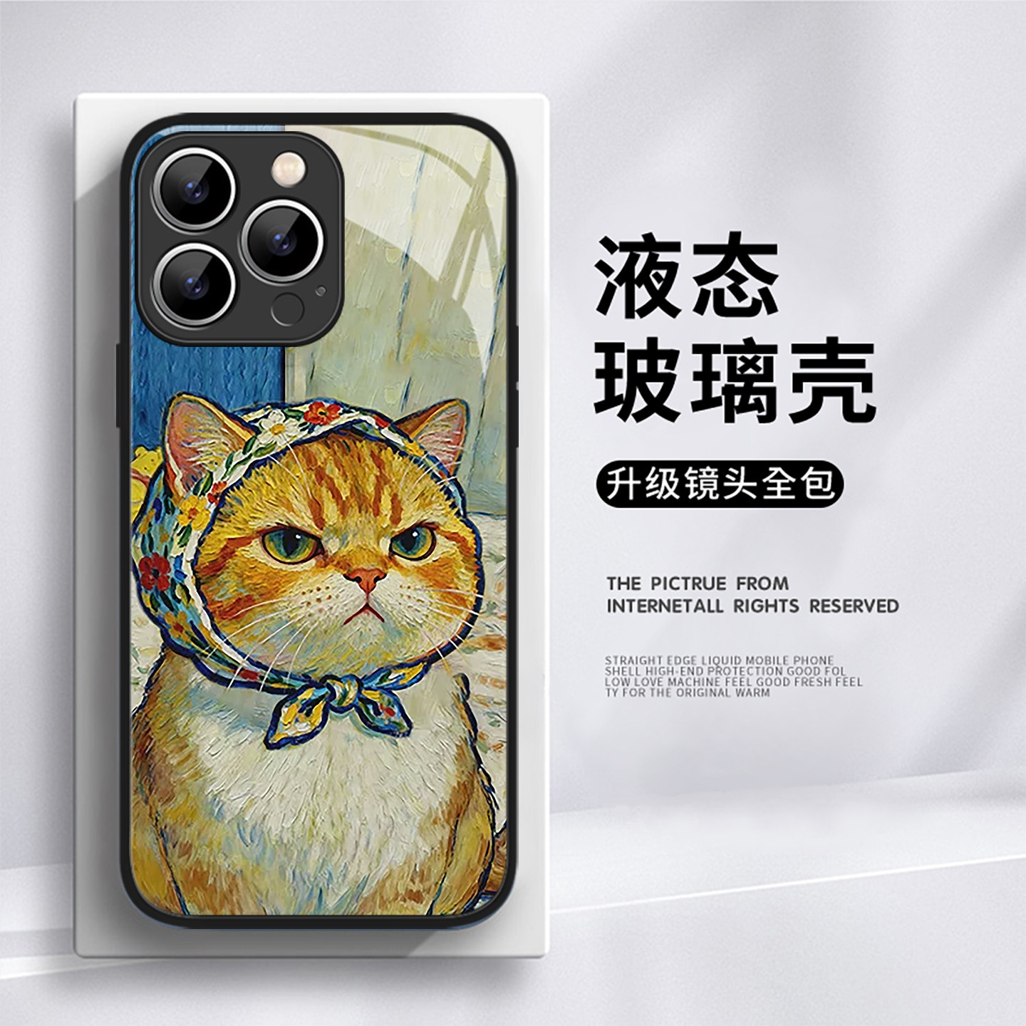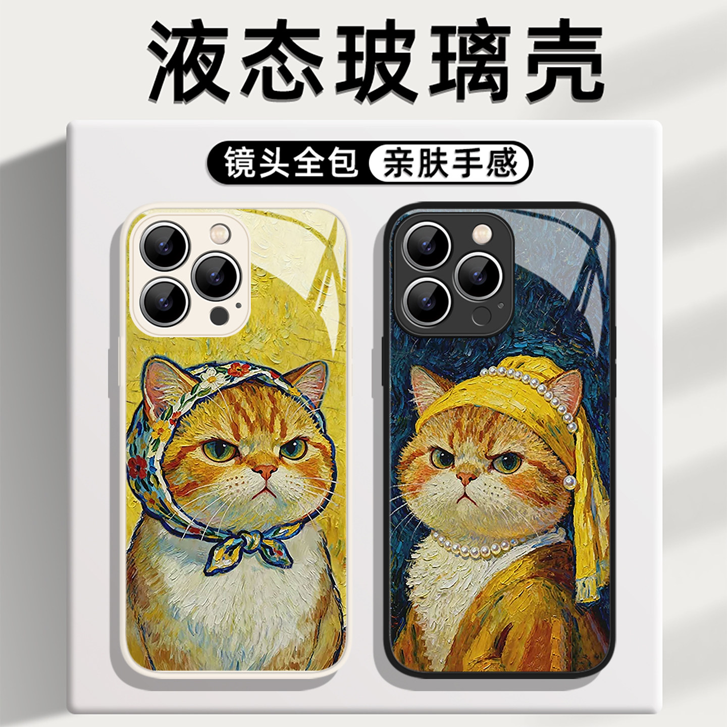 梵高油画猫咪手机壳适用于华为mate80可爱卡通Mate70文艺艺术mate60pro高级感mate40全包30新款promax玻璃50