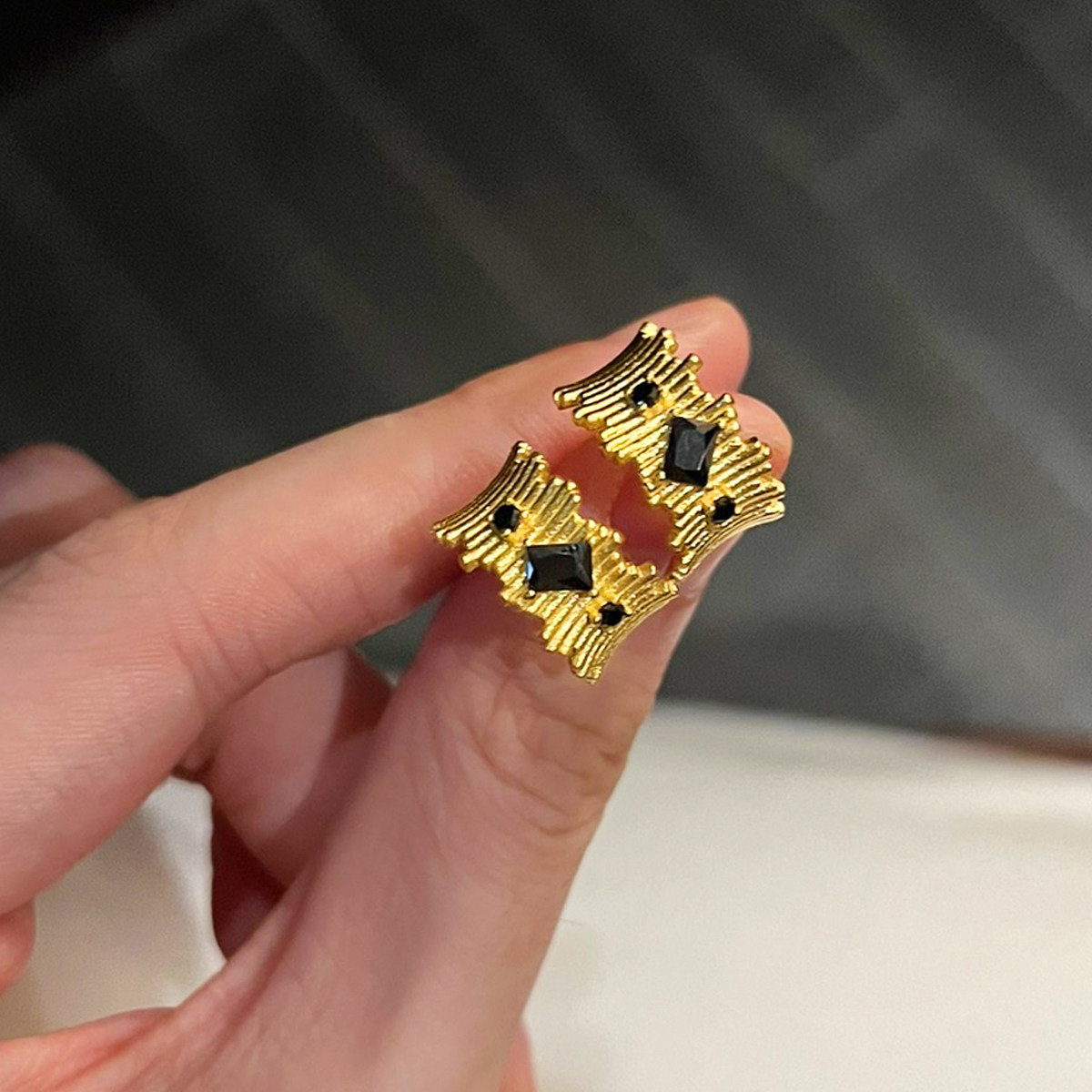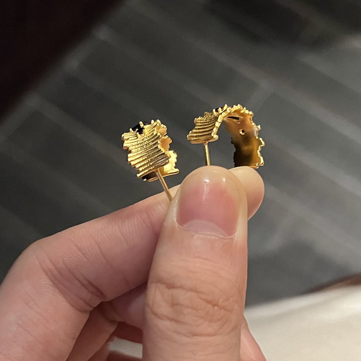 999足金点钻耳钉黄金耳饰巧克力