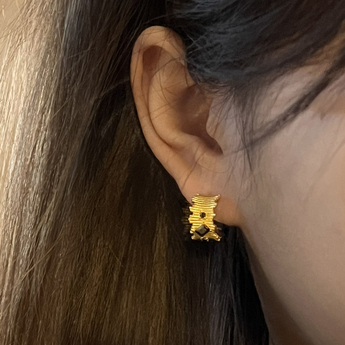 吉盟珠宝999足金点钻耳钉送女友黄金耳饰巧克力半包时尚个性ins风