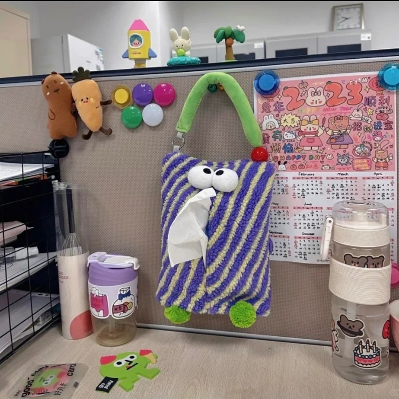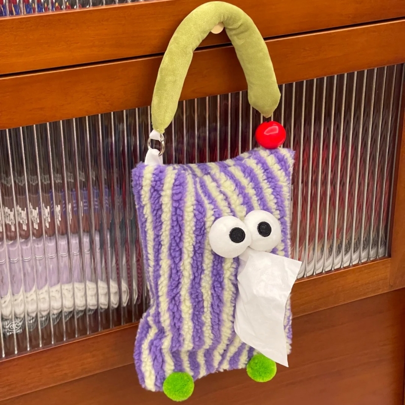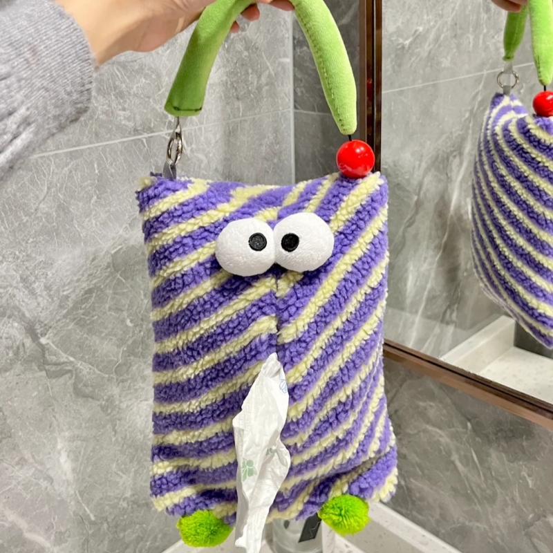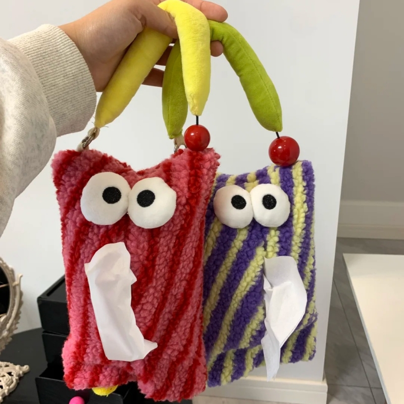 大眼萌萌车载纸巾盒抽盒毛绒家用纸巾挂袋创意可爱挂袋汽车抽纸盒