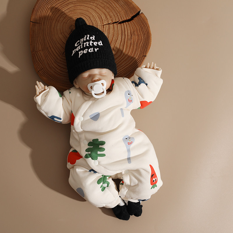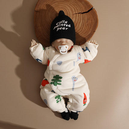 婴姿婴儿夹棉衣服秋冬季加厚保暖连体衣哈衣纯棉宝宝爬服外穿棉