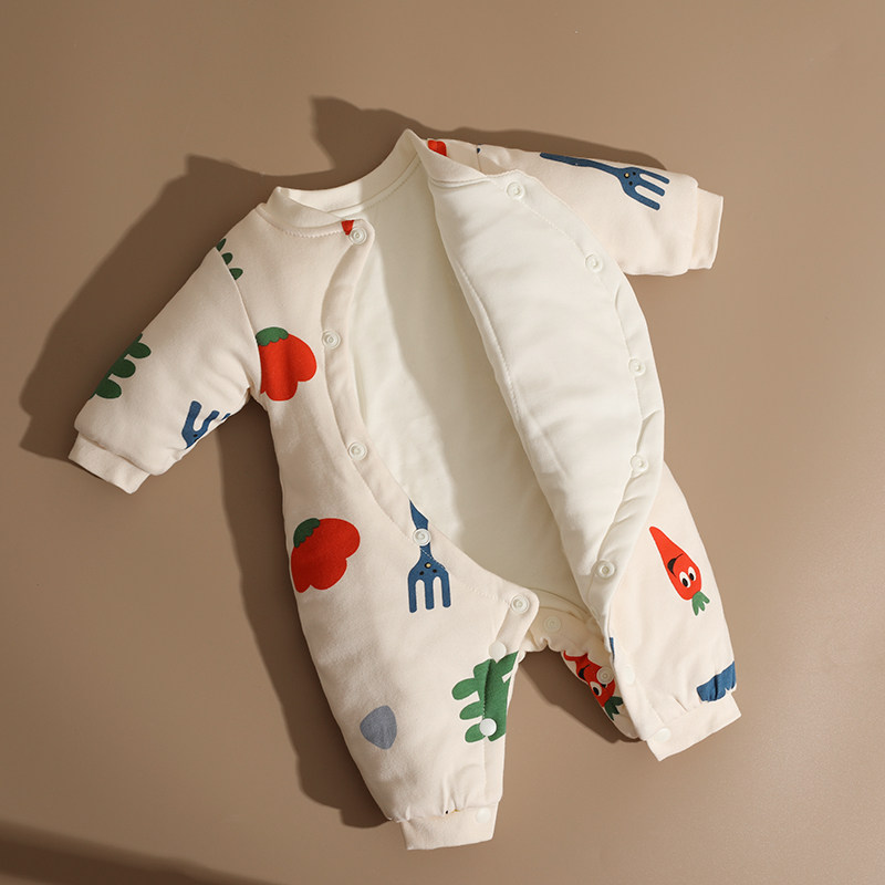 婴儿夹棉衣服秋冬季加厚连体衣