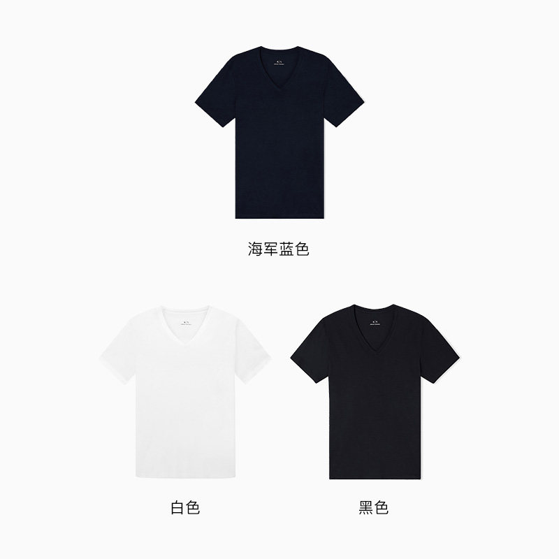 ARMANI EXCHANGE/阿玛尼秋冬男女情侣款纯色修身V领短袖T恤内搭