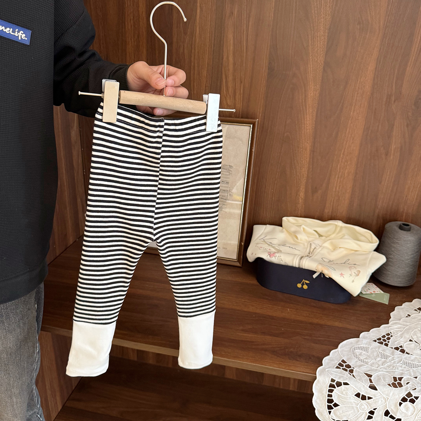 女宝宝洋气拼色条纹长裤女婴儿春秋款2025新款女童超弹打底裤外穿