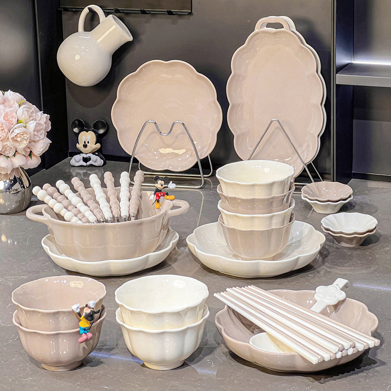 高级感碗碟套装家用陶瓷盘子釉下彩餐具碗盘轻奢高档米饭碗碗具