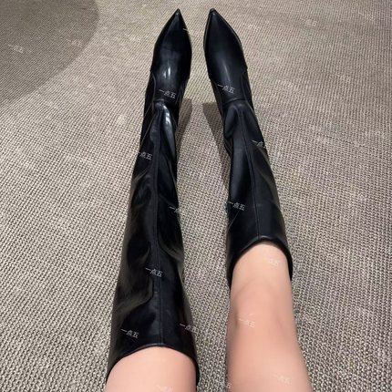 一点五增高13-11CM高跟靴2025年秋冬新款气质尖头经典黑色女鞋