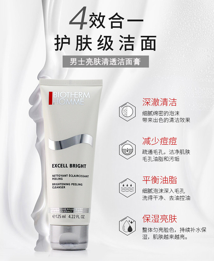 法国碧欧泉男士洗面奶亮肤清透洁面膏125ML控油提亮改善暗沉护肤