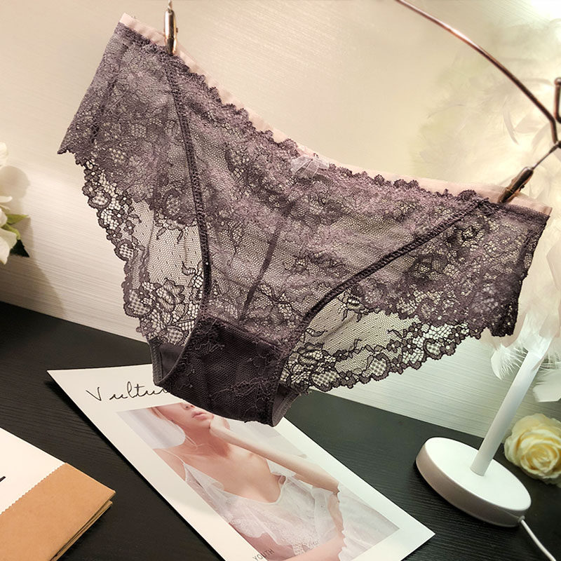 欧美无痕性感蕾丝内裤女士低腰微透视三角裤纯棉裆甜美少女底裤薄