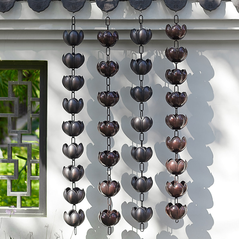 紫铜别墅落水雨链中式屋檐滴水雨链排水链庭院导水链天沟雨水槽