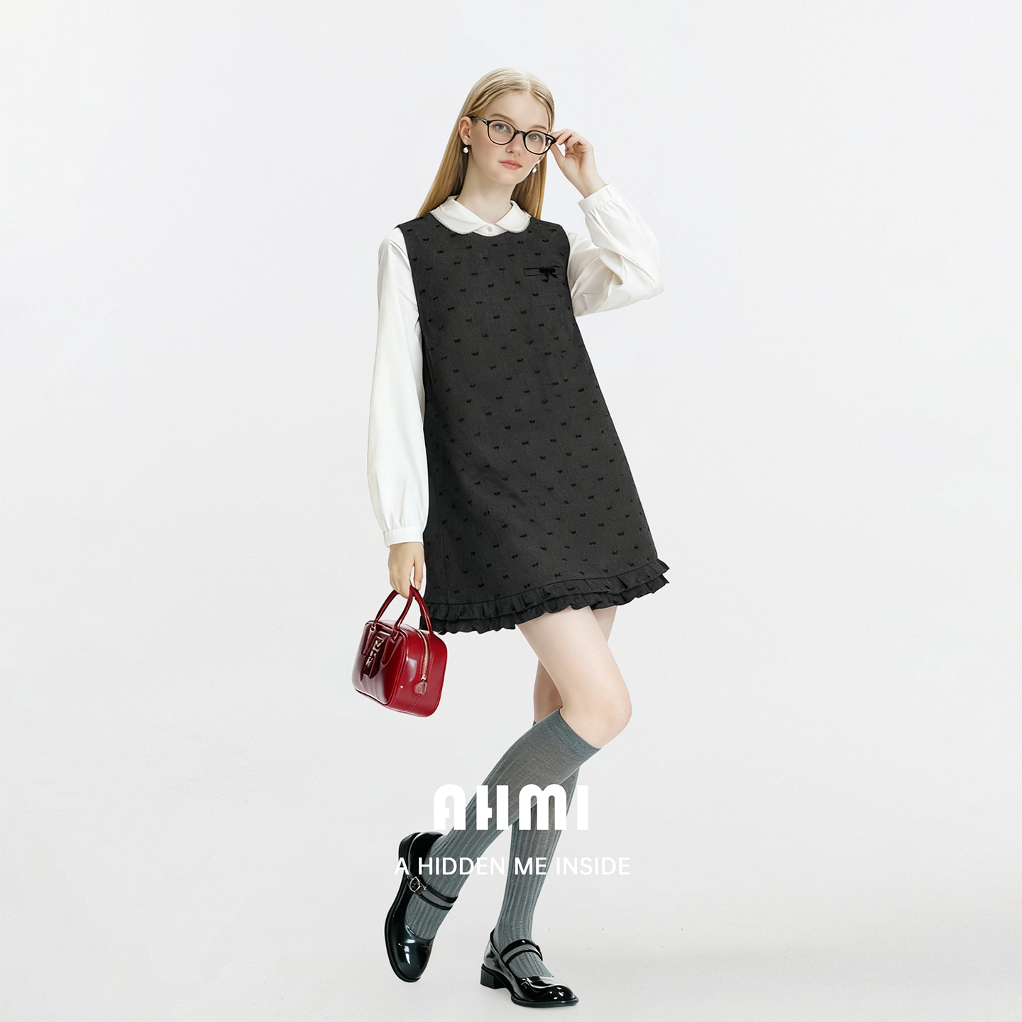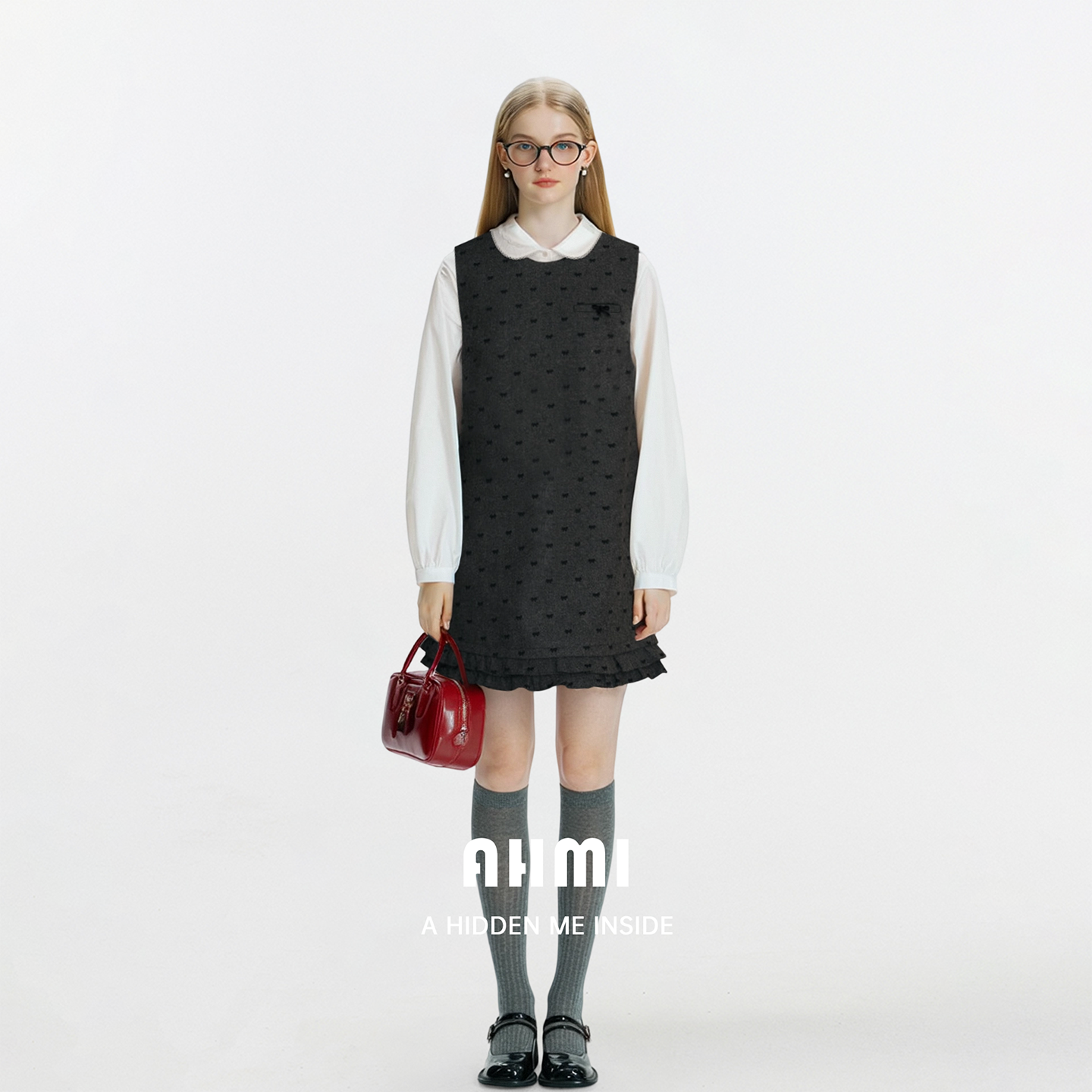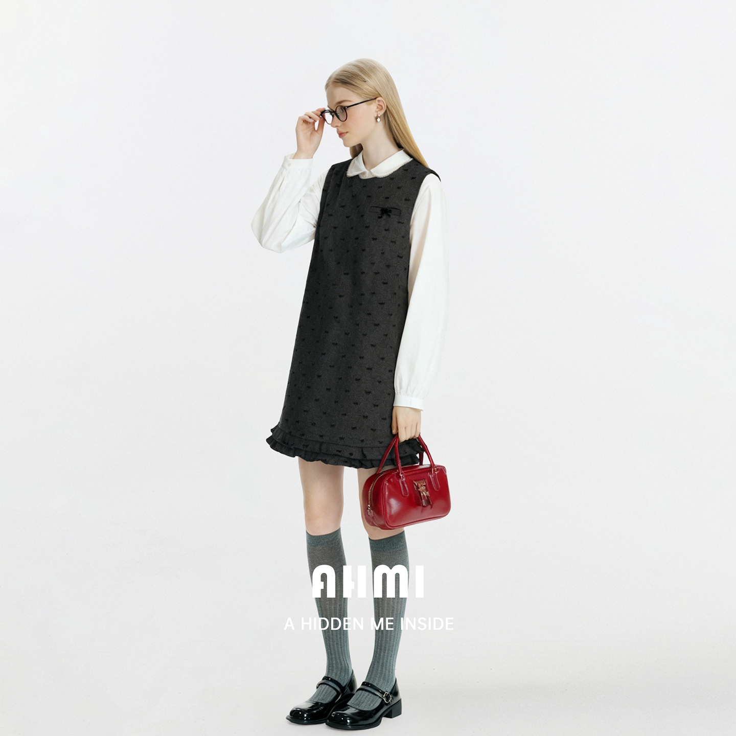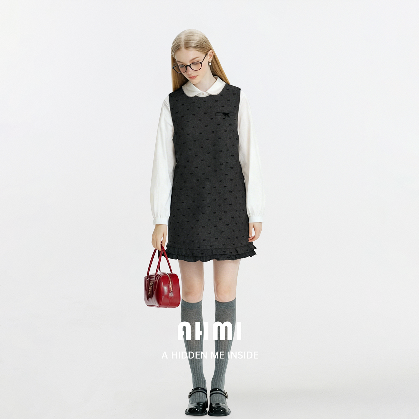 AHMI“高校千金”高比例羊毛呢无袖连衣裙女秋冬叠搭名媛风背心裙