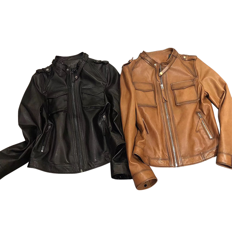 【很肉!很软】2024秋新立领口袋真皮皮夹克女修身机车皮衣外套短
