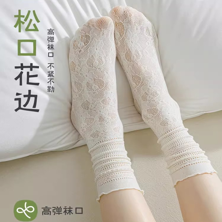 白色堆堆袜子女夏季薄款蕾丝花边中筒袜配小皮鞋黑色ins潮冰冰袜