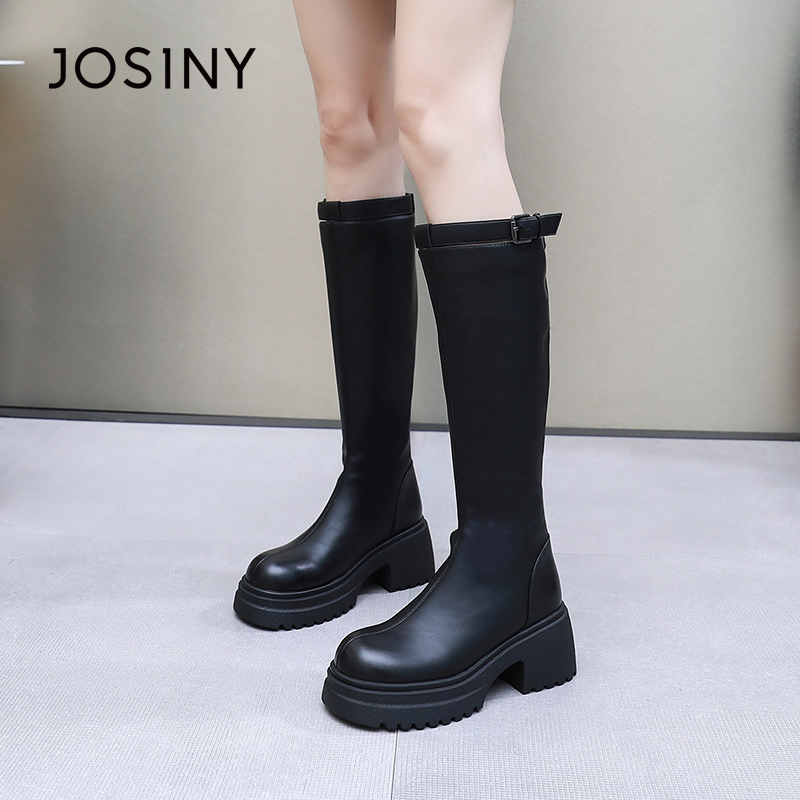 卓诗尼2025秋冬新款高筒靴不过膝长靴高筒厚底长筒骑士靴加绒女鞋