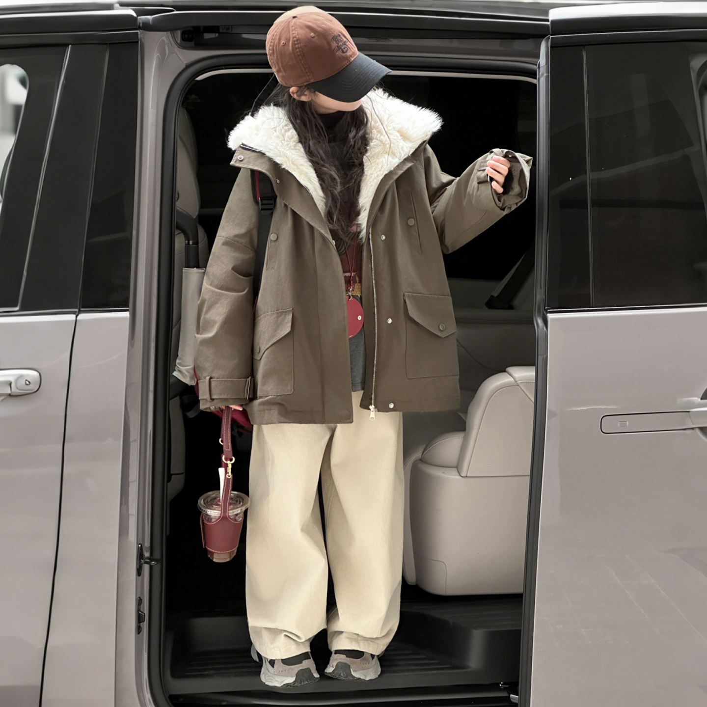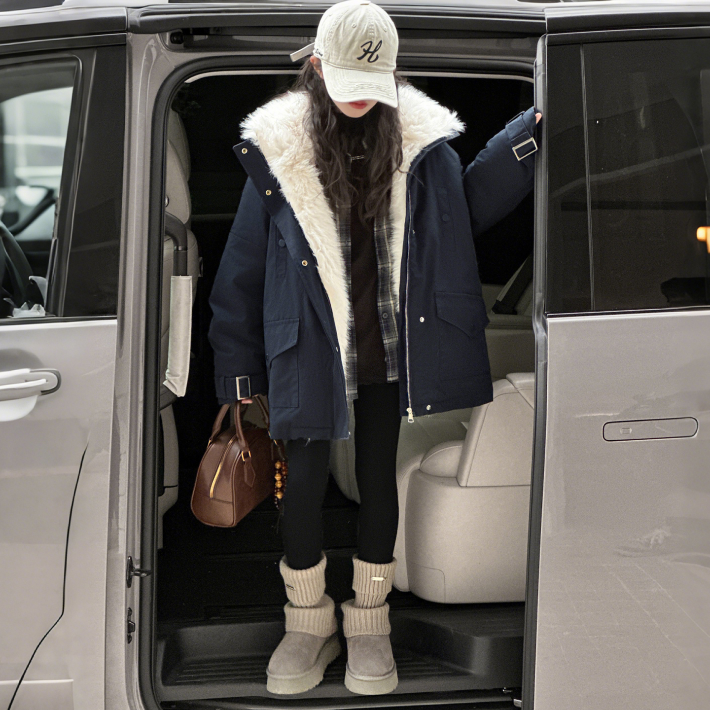 女童加绒外套秋冬款2025新款女大童冬季加厚毛毛衣儿童冬装派克服
