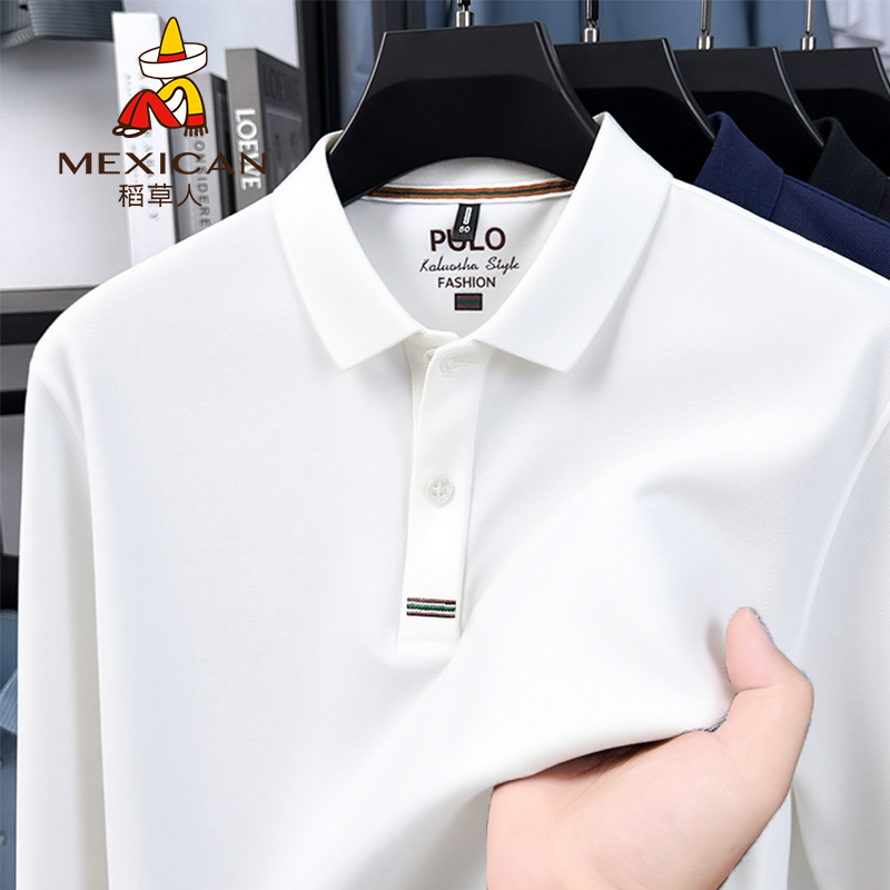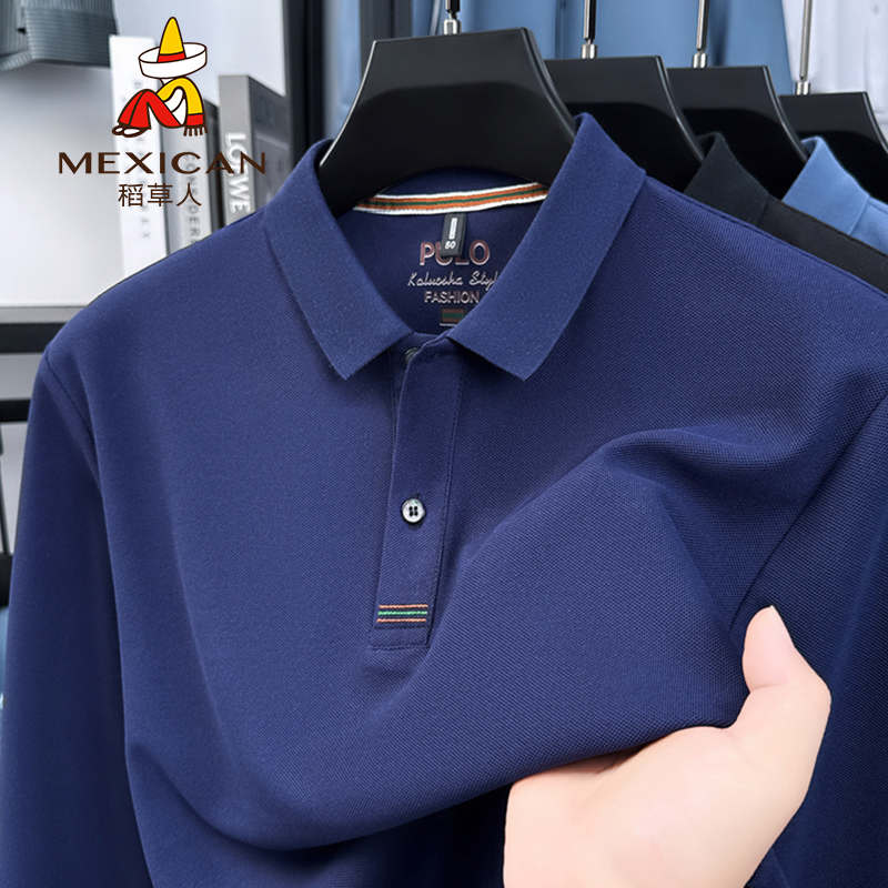 稻草人新款春秋季polo衫男士长袖t恤翻领休闲商务打底衫上衣男款