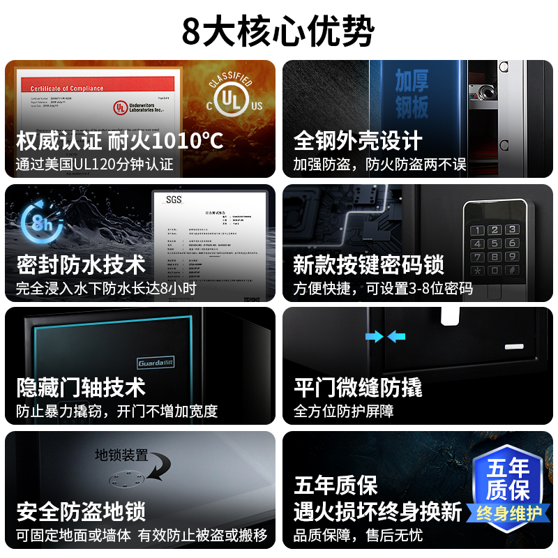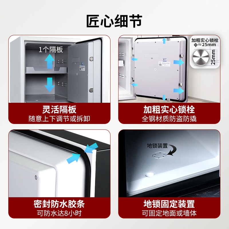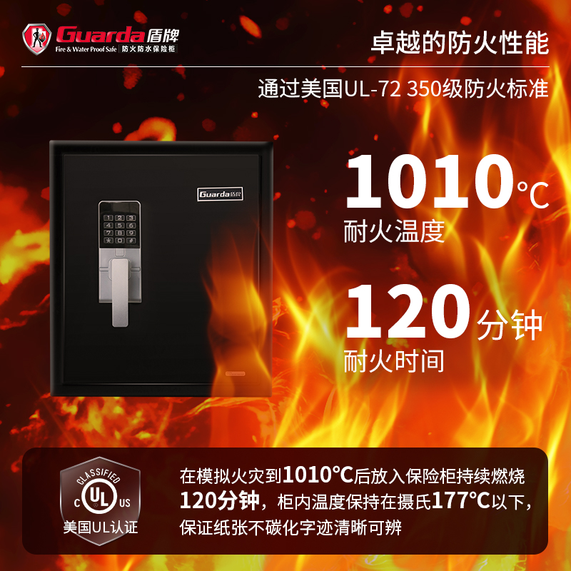 盾牌全钢防火防水防盗保险柜家用小型54cm大型加厚重入墙衣柜指纹密码3175款保险箱办公室固定UL防火认证夹万