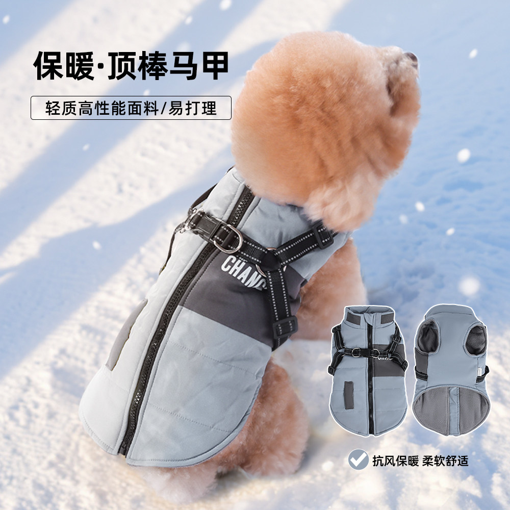 狗狗秋冬季棉衣小型犬比熊泰迪雪纳瑞棉服可牵引加厚保暖羽绒棉衣