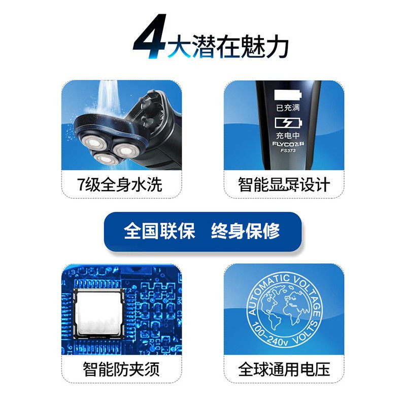 飞科剃须刀充电动刮胡刀男士全身防水洗智能胡须刀鬓角修剪器373