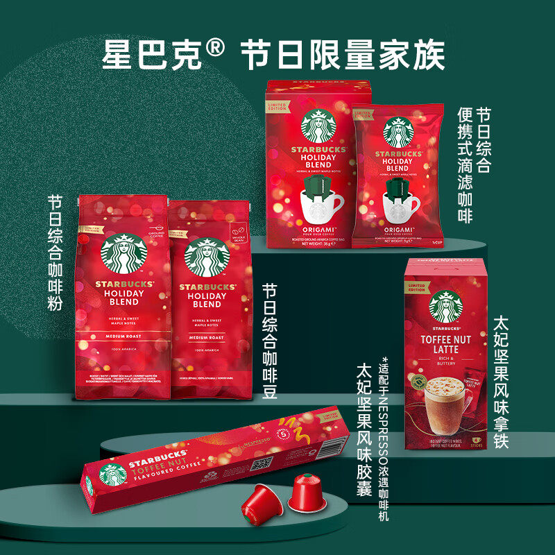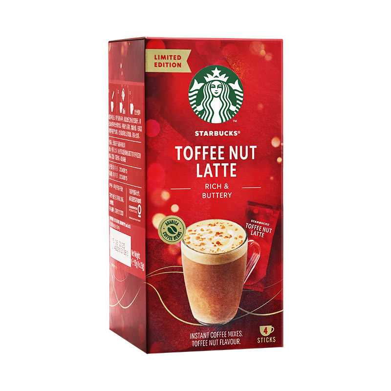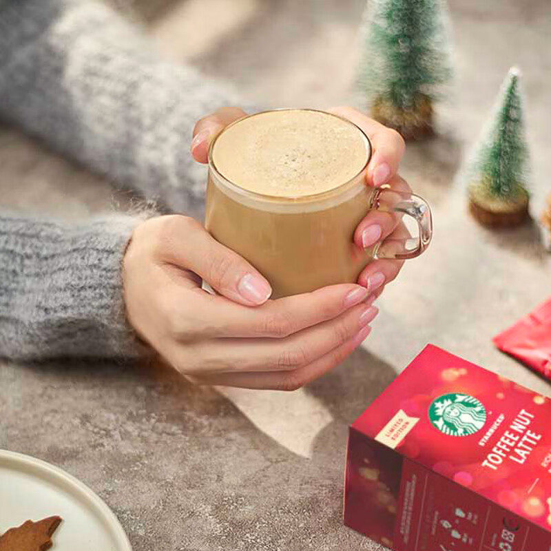 星巴克太妃榛果拿铁节日限定92g精品咖啡速溶即溶盒装下午茶奶咖