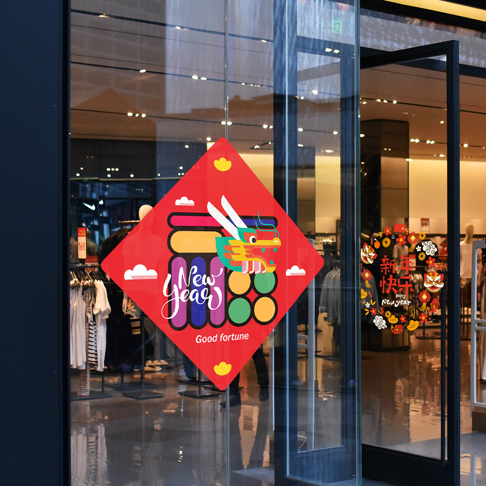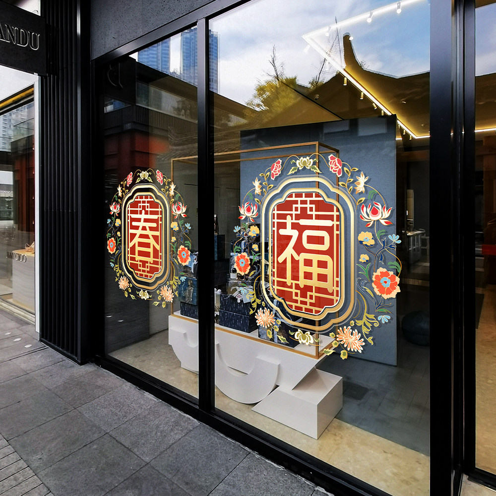 2026马年剪纸风玻璃门贴纸春节新年窗花静电橱窗贴画装饰场景布置