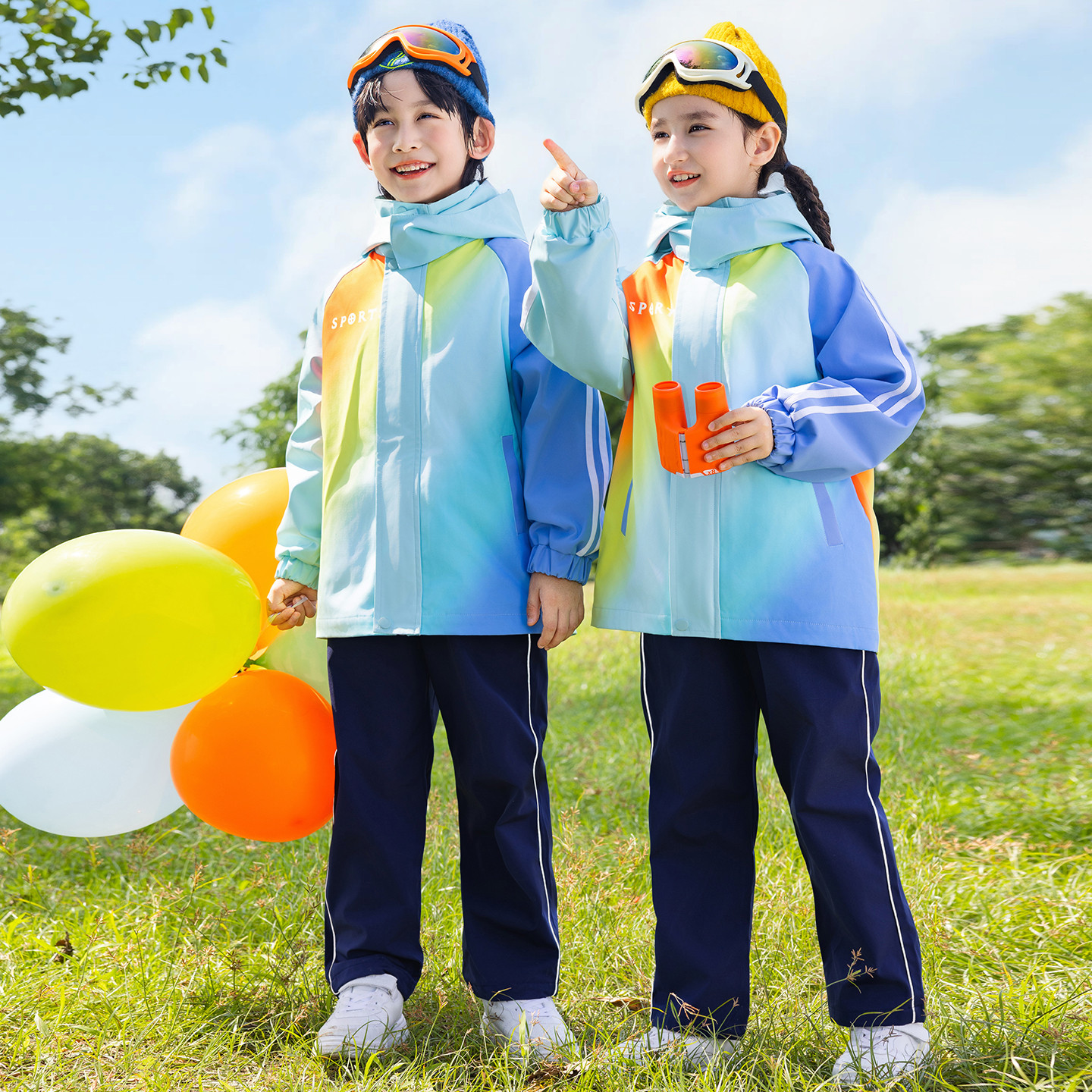 学院风小学生校服套装新彩虹冲锋衣儿童一年级班服七件套幼儿园服