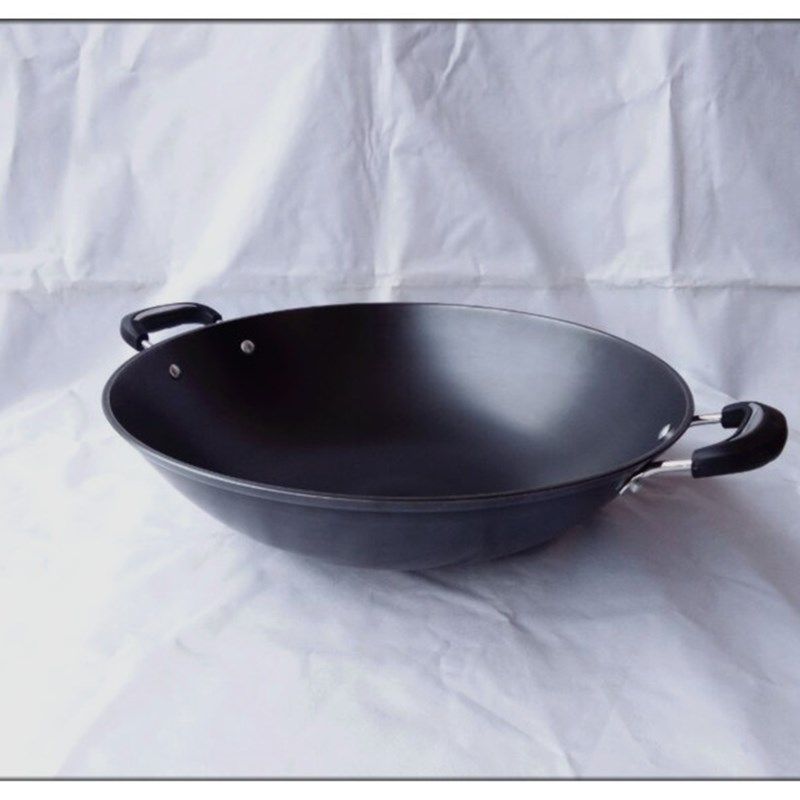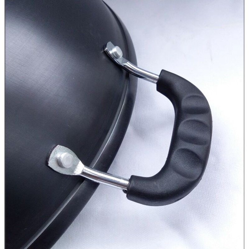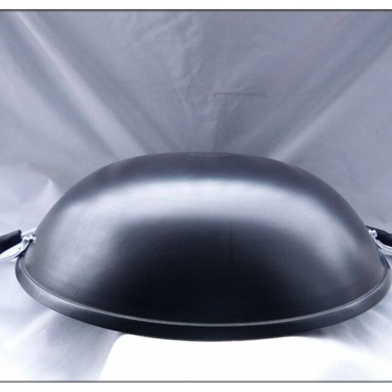 陆川铁人牌生铁铸铁锅无涂层不粘锅不生锈双耳大炒锅加厚圆底尖底