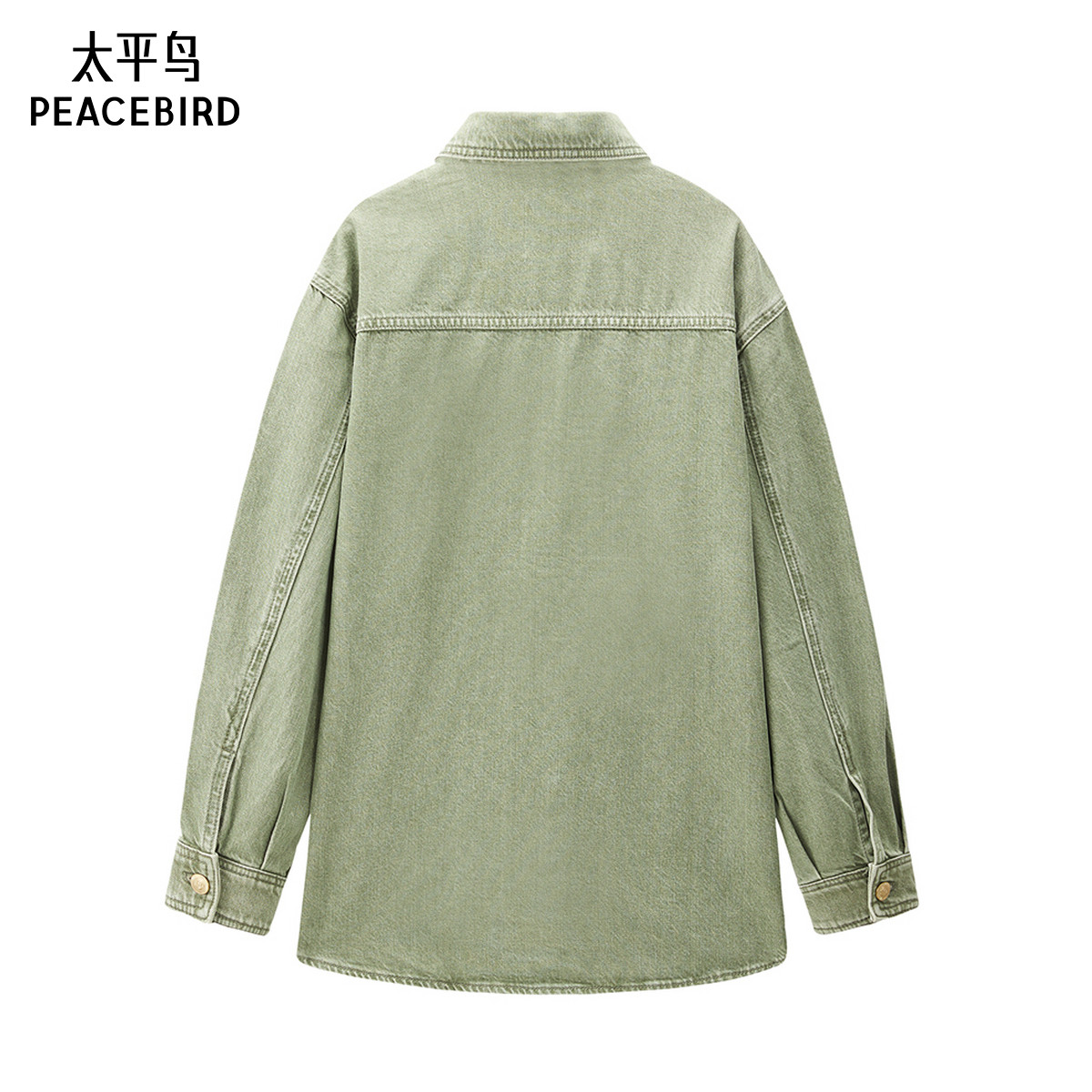 太平鸟女装2024秋季新款经典宽松牛仔衬衫A1CAE3373