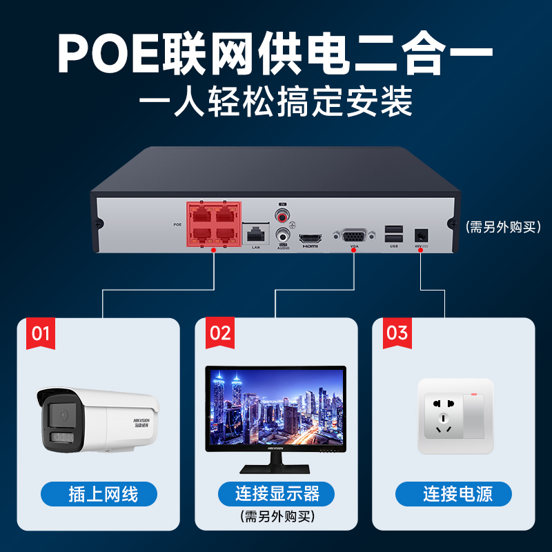 海康威视800万全彩监控摄像头POE语音对讲3T86FWDA4-LS人车报警