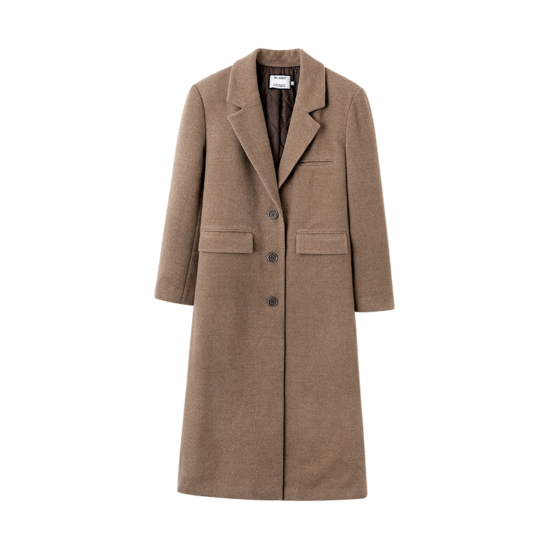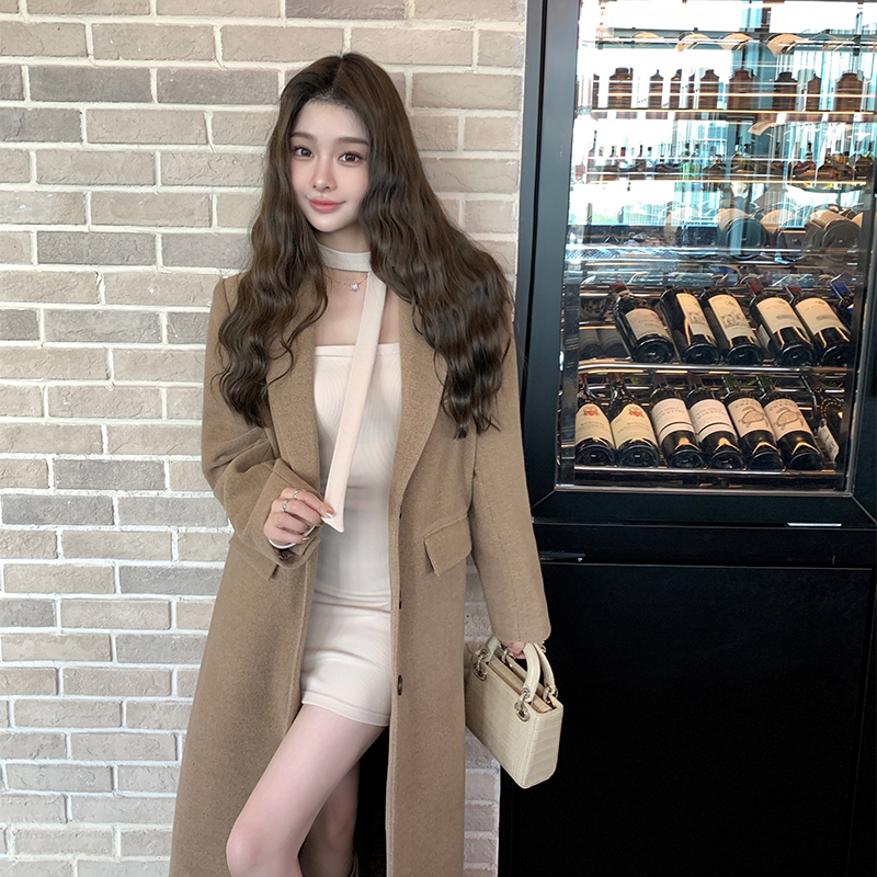 韩雨嘉棕色气质中长款毛呢外套女冬季宽松显瘦高级感西装呢子大衣