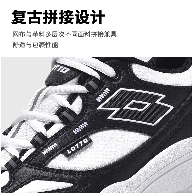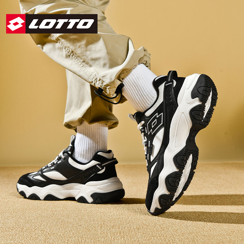 LOTTO乐途男经典黑白老爹鞋2025秋冬新款复古厚底运动休闲熊猫鞋