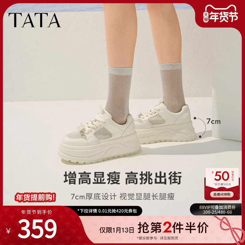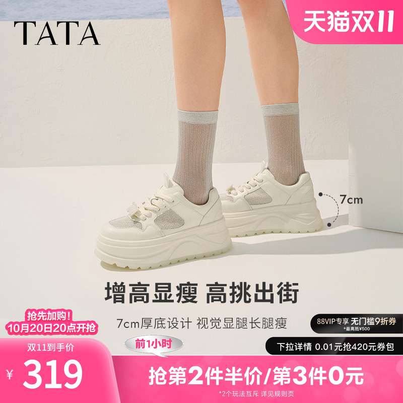TATA他她厚底休闲板鞋女鞋网面透气松糕小白鞋2025年新款CP201BM5
