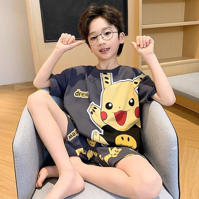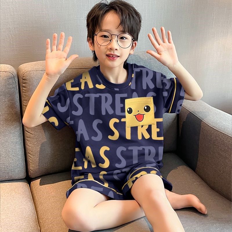 男童卡通中大童短袖短裤家居服男孩睡衣儿童夏季薄款套装2025新款
