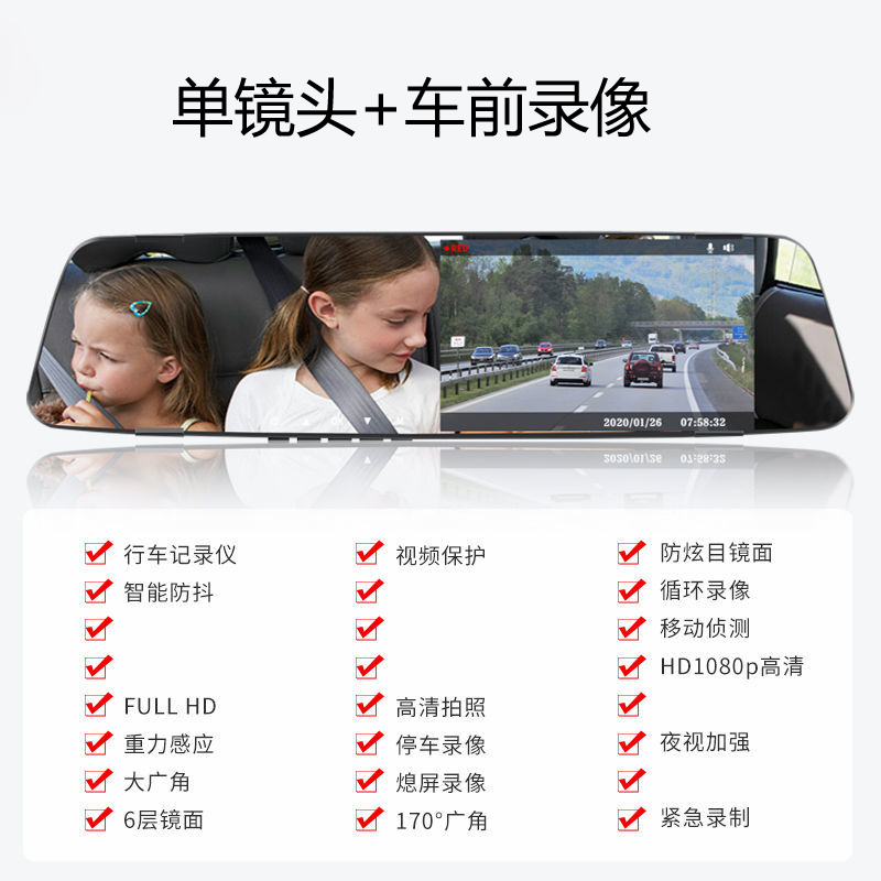 薄款高清1080P汽车行车记录仪后视镜双镜头带倒车影像夜视一体机